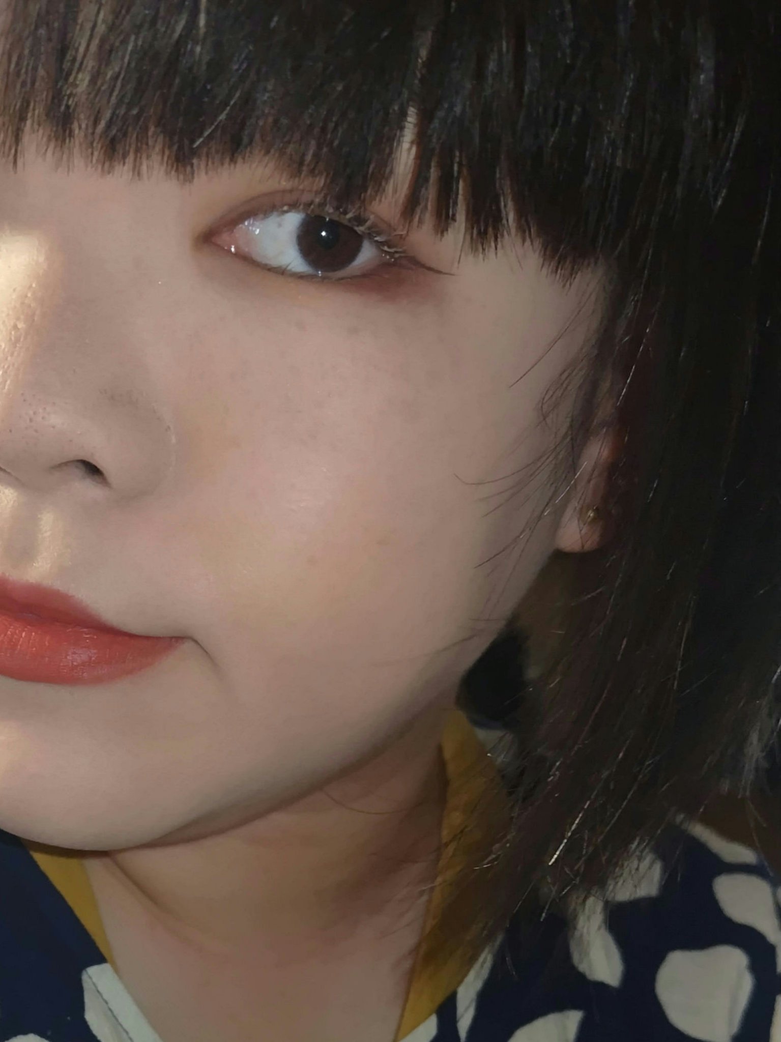 パウダー キス アイシャドウ/ディーズ バッグス アー デザイナー→目の下全体 パウダー キス アイシャドウ/ワット クラウト!→まぶた全体 スモール アイシャドウ/エスプレッソ→目尻に締色としてグラデーション。 💄ラスターガラス リップスティック/フェモメノン