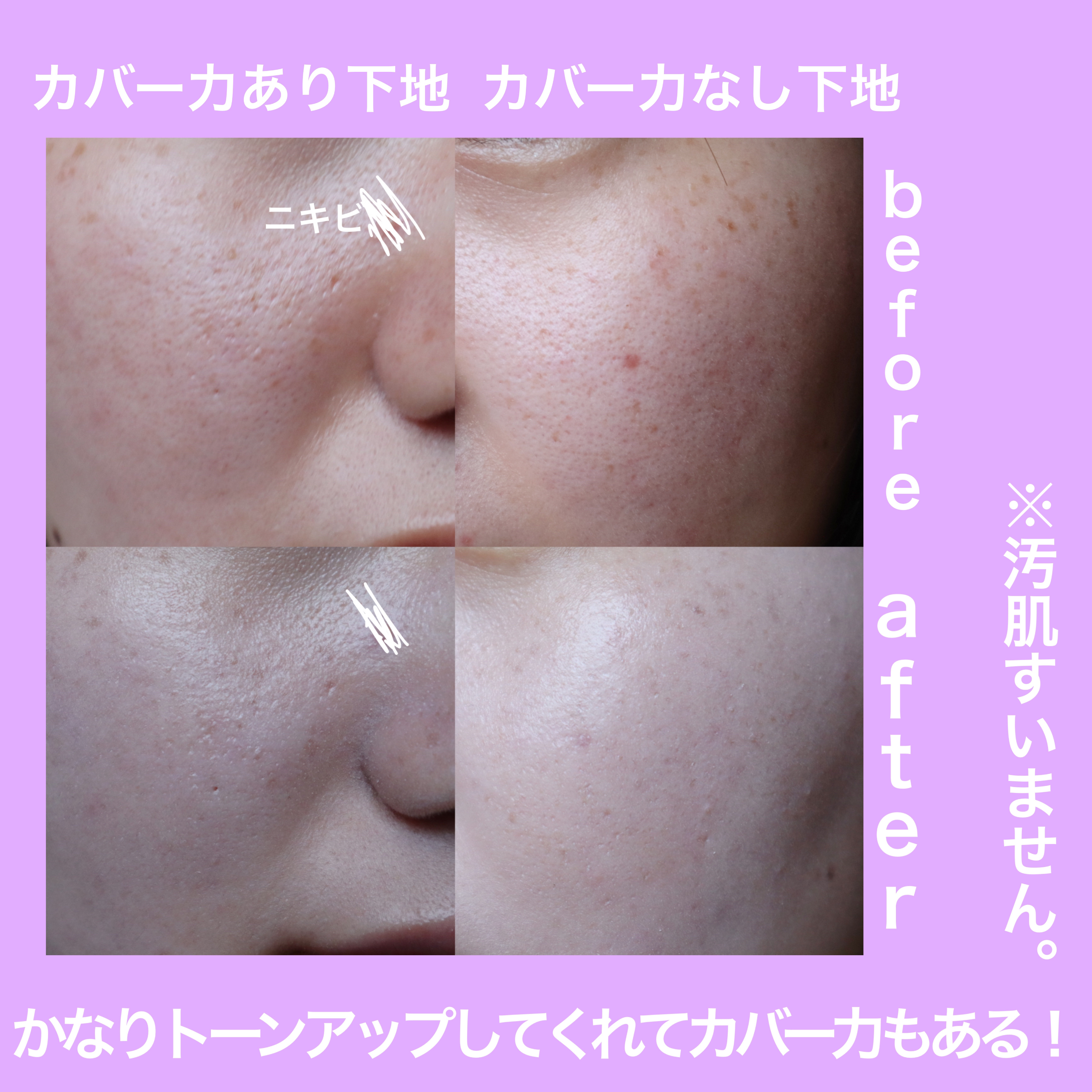 透明な紫色を肌に薄く伸ばすことで黄色いスキントーンが華やかに補完する くすみを飛ばして自然にトーンアップしつつ毛穴も綺麗にカバーしてくれます! 伸びも肌馴染みも良くて崩れにくくなるので、化粧下地として使ってます!