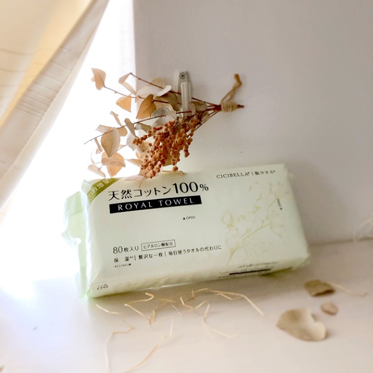 吸水性が高いため、顔を擦らずそっと置くだけでいいみたい! 天然コットン100%×ヒアルロン酸配合とのこと✨ 思ったより厚手でふわふわとした感触です💕 破けにくくしっかりとしていますが、柔らかくて肌触りも気持ちいい◎ スキンケアの際のパックやクレンジングだけでなく、ヘビーケアや掃除にマルチに使える優れもの😆 おうちにタオルいらないですね🤣 雑菌まみれのタオルや、吸水性の悪いタオルで顔を擦っていたら、ますます悪化しちゃいます😱 ロイヤルタオルで美肌を目指してみますね🥰