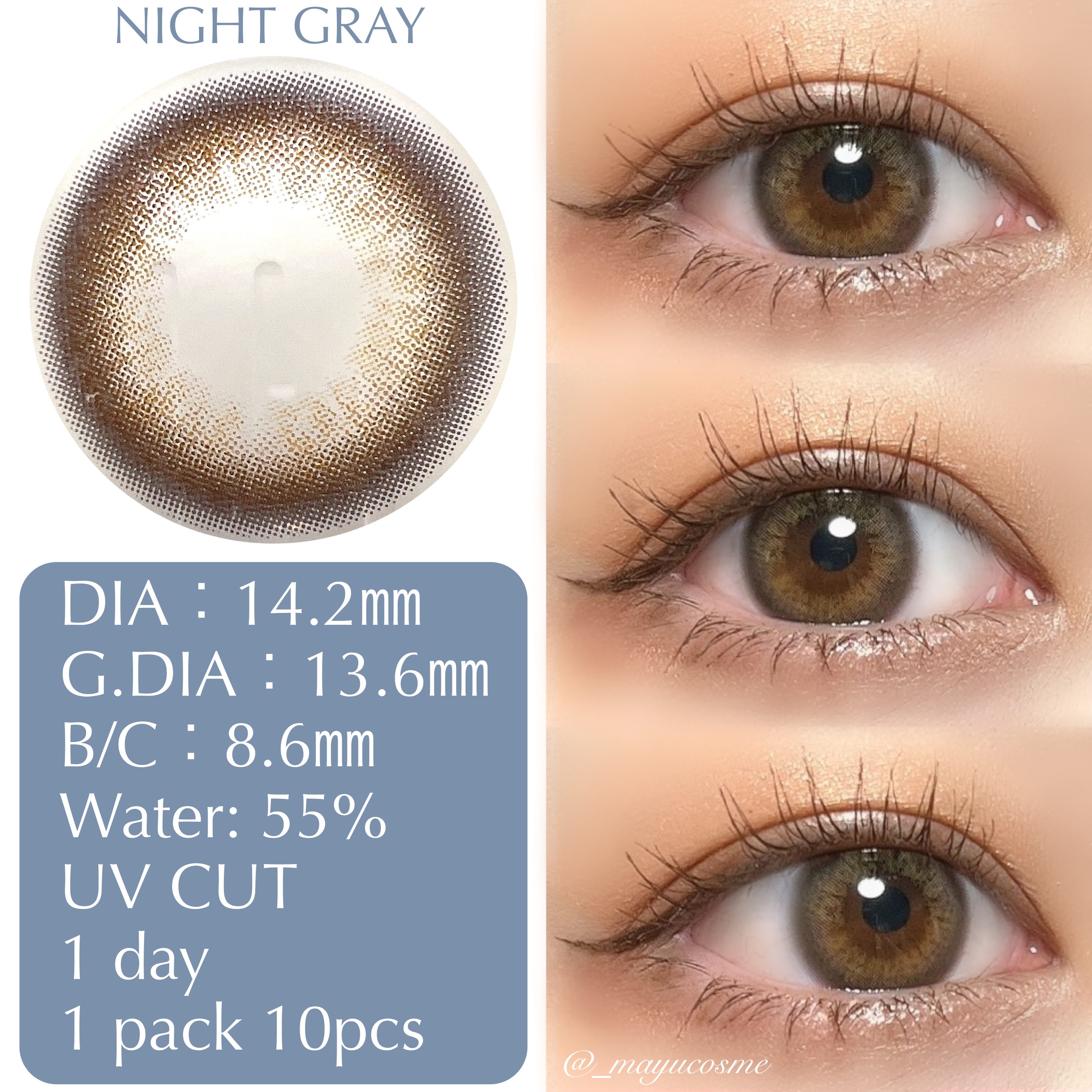 ブラウンとライトベージュを対照的に重ねることで、月の光が差し込んだような透明感のある瞳に 派手すぎないナチュラルなグレーカラコン✨️ ふんわりした縁と小ドットのグラデーションで 自然に馴染むグレーカラコンです👍🏻❕ オレンジやイエローを使っていて、縁は淡いグレーで派手過ぎなくて綺麗なカラコンです😍 ヘーゼル×ベージュの透き通るような色味のじゅわっと裸眼と馴染みやすい、 色素薄い系ハーフアイを目指せるカラコンです👀
