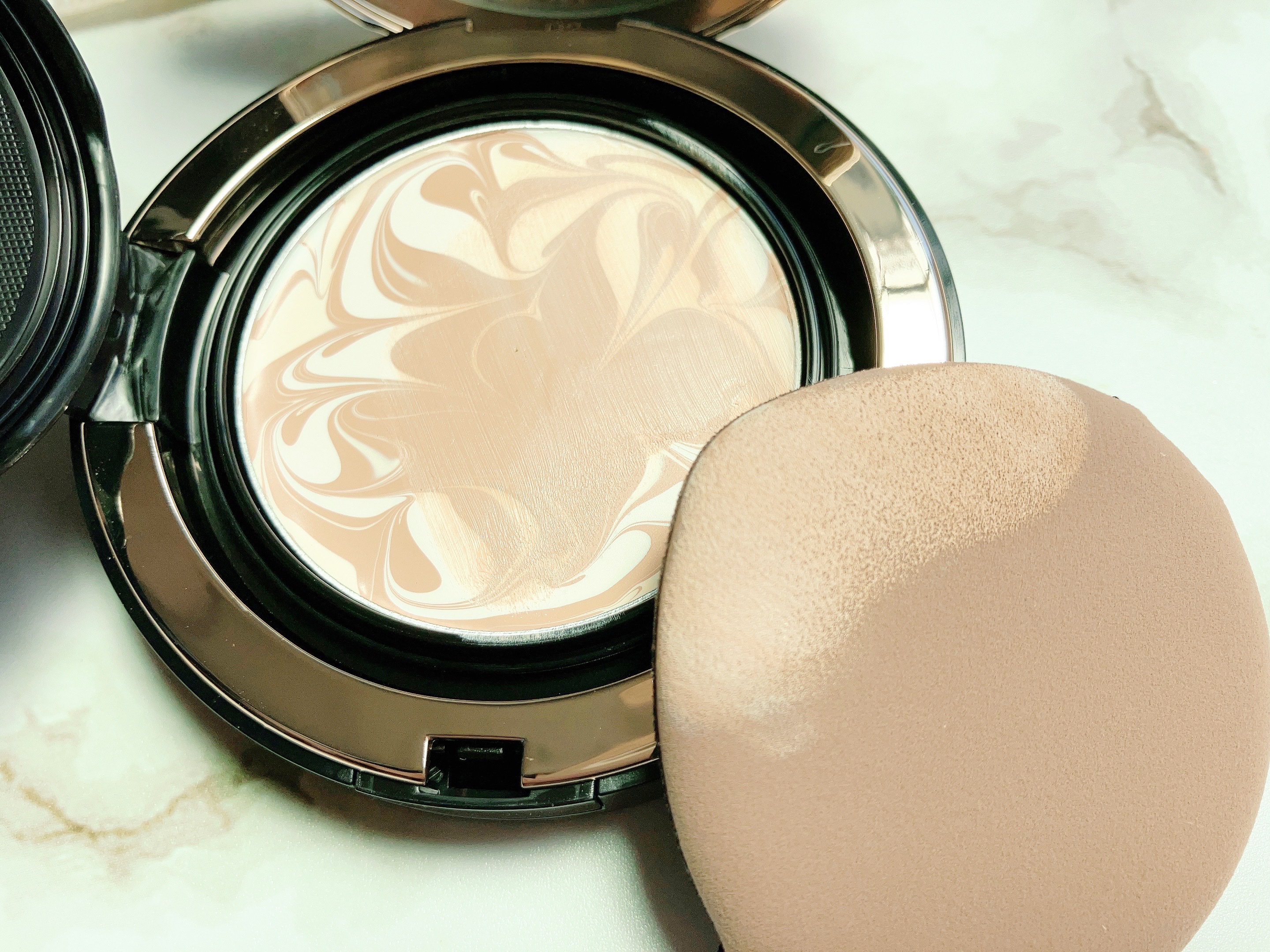 肌が透けるような透明感のあるやわらかなマット。 サラふわで軽やか、素肌感が残ります👌♡ 光だけを纏ったような自然で透明感のあるツヤタイプ。 何よりツヤ感がとにかく自然‼️ 付属のパフのふわふわ感、厚みもちょうどよくて使いやすかったです👌♡