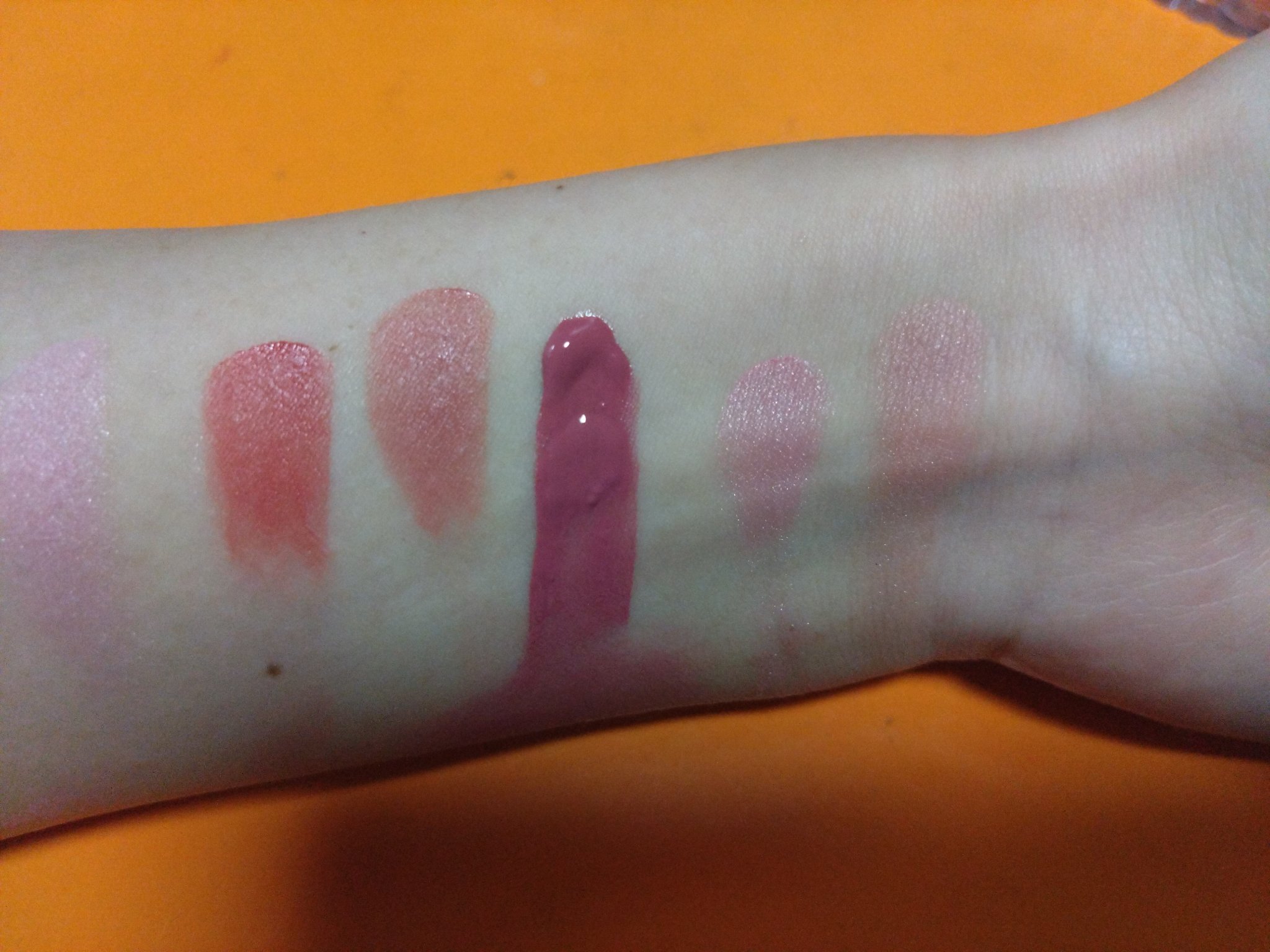 私が初めてこのコスメ欲しい!ってなって買いに行ったものです。 たしかその時はピンクとブルーとイエローを買ったかな〜。 今回はピンクとピーチを買いました。 手前がピンクで奥がピーチです。 アプリケーターとかも最初どうやって塗るのかなと思いながら塗ったのが懐かしいです。 色味は結構薄目だった記憶があり、重ね塗りしてました。 グロスの出番が最近全く無いのですが、買わなかったら後悔するかなと思って買っちゃいました(ง ˙ω˙)ว