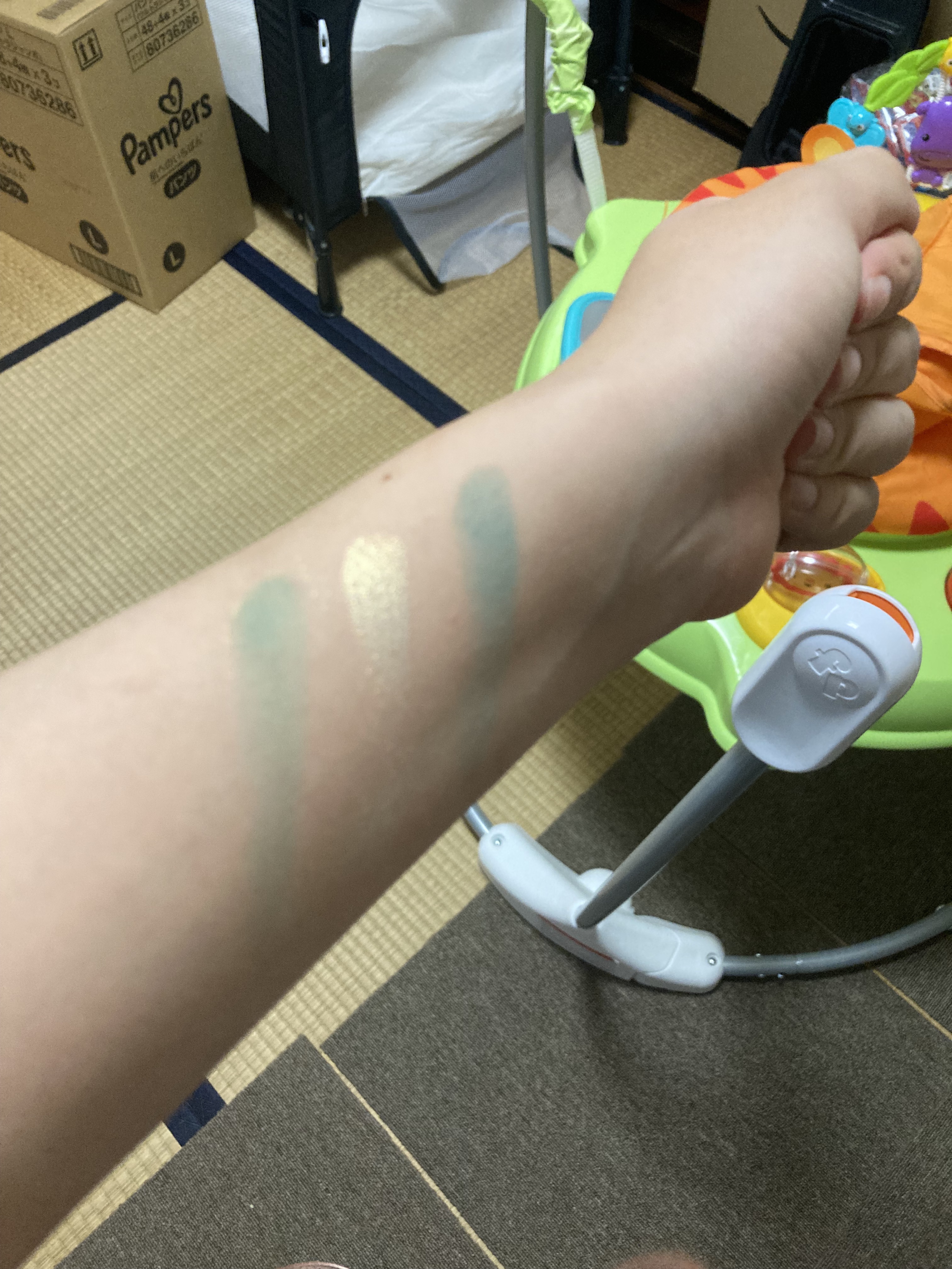 奥二重でアイシャドウ映えないので下瞼が目力の鍵ですね😭 番号振ったのでその画像通りに説明します。2番4番6番を使いました。 4番をまぶたにぬって 6番を二重ラインあたりまでと、下瞼1/3に塗り 黒目の上と涙袋に2番を塗ってみました。 4番は色薄めでした。涙袋のラメがとても綺麗に付いて、いい感じです。立体感あると思います。