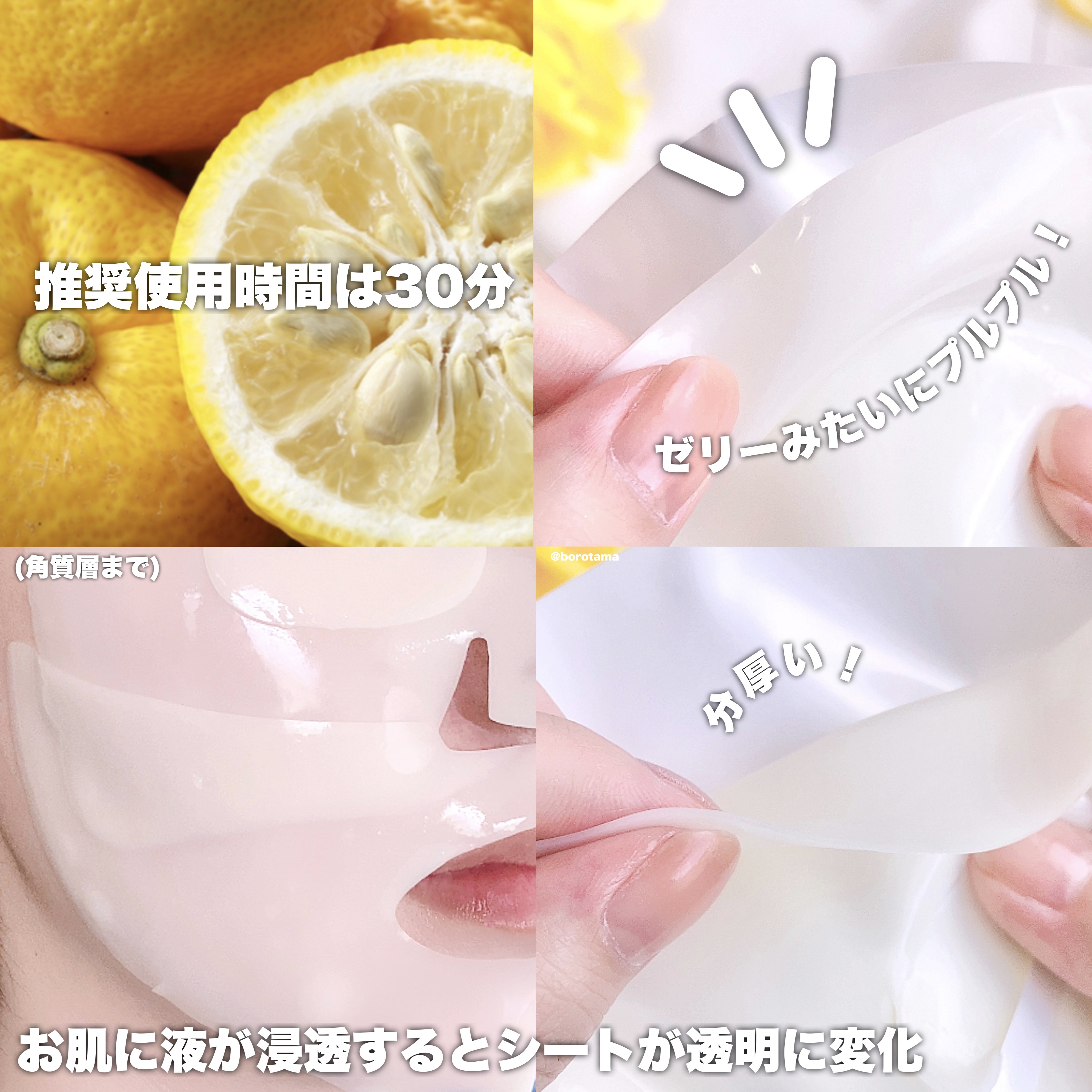 | ゲルタイプのシートがぴたっと肌に密着。しっとりべたつかない使い心地でとても良かった! そして何より優しいユズの香りが大好き | 詳細を見る | |
