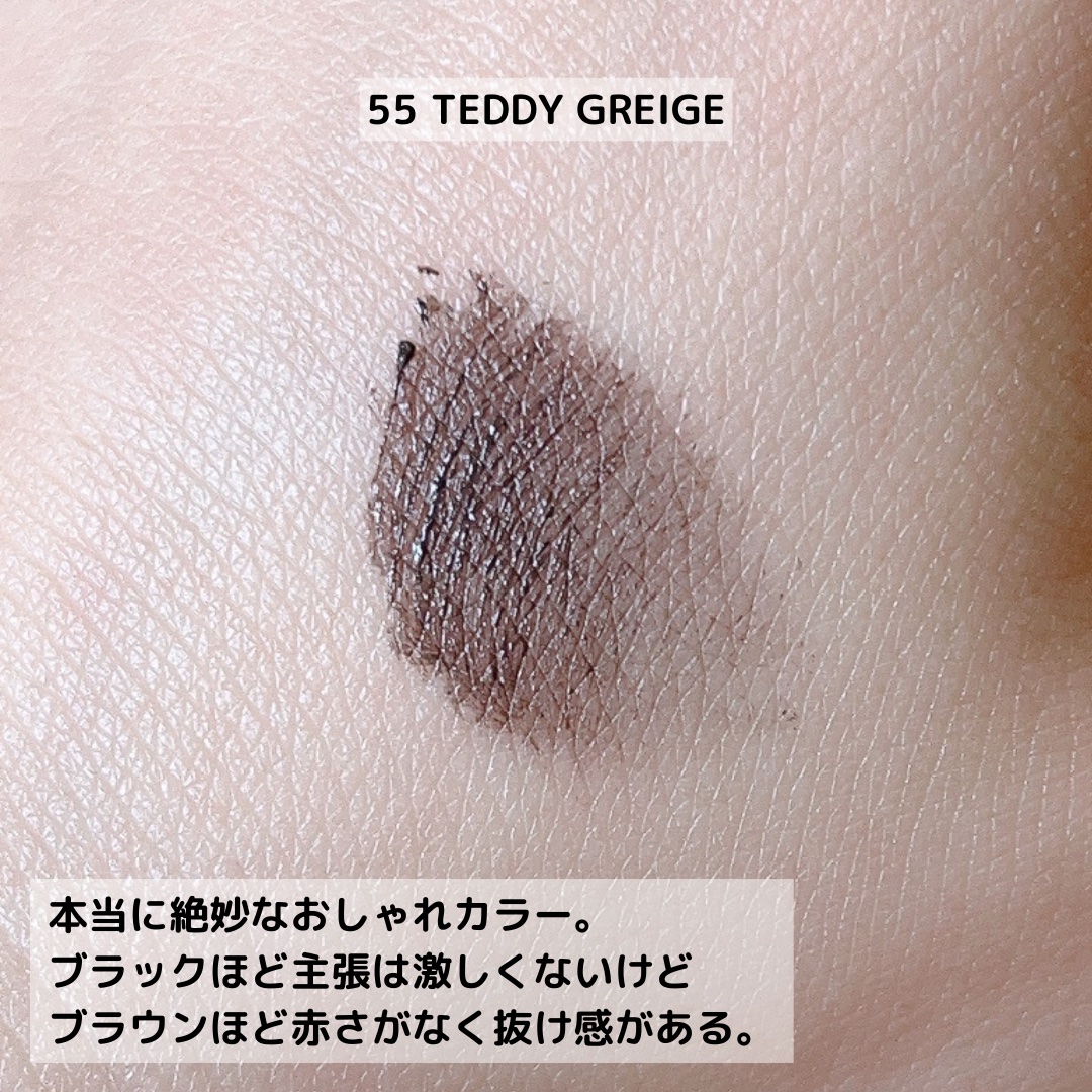 - <50 ピンクブラウン> イソドデカン、トリメチルシロキシケイ酸、タルク、マイクロクリスタリンワックス、セレシン、ジステアルジモニウムヘクトライト、(パルミチン酸/エチルヘキサン酸)デキストリン、イソステアリン酸PEG-20ソルビタン、水添ポリイソブテン、ミツロウ、炭酸プロピレン、ナイロン-66、アルガニアスピノサ核油、カニナバラ果実油、ツバキ種子油、ローヤルゼリーエキス、ジステアリン酸Al、イソステアリン酸グリセリル、ポリメチルシルセスキオキサン、(メタクリル酸ジエチルアミノエチル/HEMA/メタクリル酸パーフルオロヘキシルエチル)クロスポリマー、スクワラン、シリカ、酸化鉄、マイカ、酸化チタン <51 ドライローズ> イソドデカン、トリメチルシロキシケイ酸、タルク、セレシン、マイクロクリスタリンワックス、ジステアルジモニウムヘクトライト、(パルミチン酸/エチルヘキサン酸)デキストリン、イソステアリン酸PEG-20ソルビタン、水添ポリイソブテン、ミツロウ、炭酸プロピレン、ナイロン-66、アルガニアスピノサ核油、カニナバラ果実油、ツバキ種子油、ローヤルゼリーエキス、ジステアリン酸Al、イソステアリン酸グリセリル、ポリメチルシルセスキオキサン、(メタクリル酸ジエチルアミノエチル/HEMA/メタクリル酸パーフルオロヘキシルエチル)クロスポリマー、スクワラン、シリカ、酸化鉄、マイカ、酸化チタン <52 アッシュヴァイオレット> イソドデカン、トリメチルシロキシケイ酸、セレシン、マイクロクリスタリンワックス、ジステアルジモニウムヘクトライト、タルク、(パルミチン酸/エチルヘキサン酸)デキストリン、イソステアリン酸PEG-20ソルビタン、水添ポリイソブテン、ミツロウ、炭酸プロピレン、ナイロン-66、アルガニアスピノサ核油、カニナバラ果実油、ツバキ種子油、ローヤルゼリーエキス、ジステアリン酸Al、イソステアリン酸グリセリル、ポリメチルシルセスキオキサン、(メタクリル酸ジエチルアミノエチル/HEMA/メタクリル酸パーフルオロヘキシルエチル)クロスポリマー、スクワラン、シリカ、マンガンバイオレット、マイカ、グンジョウ、酸化鉄、ホウケイ酸(Ca/Al)、合成フルオロフロゴパイト、酸化チタン、酸化スズ <54 ミルクティーグレージュ> イソドデカン、トリメチルシロキシケイ酸、セレシン、マイクロクリスタリンワックス、水添ポリイソブテン、ジステアルジモニウムヘクトライト、(パルミチン酸/エチルヘキサン酸)デキストリン、タルク、イソステアリン酸PEG-20ソルビタン、ミツロウ、炭酸プロピレン、アルガニアスピノサ核油、カニナバラ果実油、ツバキ種子油、ローヤルゼリーエキス、ジステアリン酸Al、イソステアリン酸グリセリル、ナイロン-66、ポリメチルシルセスキオキサン、水酸化Al、ハイドロゲンジメチコン、スクワラン、(メタクリル酸ジエチルアミノエチル/HEMA/メタクリル酸パーフルオロヘキシルエチル)クロスポリマー、シリカ、酸化鉄、酸化チタン <55 テディグレージュ> イソドデカン、トリメチルシロキシケイ酸、タルク、セレシン、マイクロクリスタリンワックス、ジステアルジモニウムヘクトライト、(パルミチン酸/エチルヘキサン酸)デキストリン、イソステアリン酸PEG-20ソルビタン、水添ポリイソブテン、ミツロウ、炭酸プロピレン、アルガニアスピノサ核油、カニナバラ果実油、ツバキ種子油、ローヤルゼリーエキス、ジステアリン酸Al、イソステアリン酸グリセリル、ナイロン-66、ポリメチルシルセスキオキサン、水酸化Al、スクワラン、(メタクリル酸ジエチルアミノエチル/HEMA/メタクリル酸パーフルオロヘキシルエチル)クロスポリマー、シリカ、酸化鉄、酸化チタン、ホウケイ酸(Ca/Na)、酸化スズ