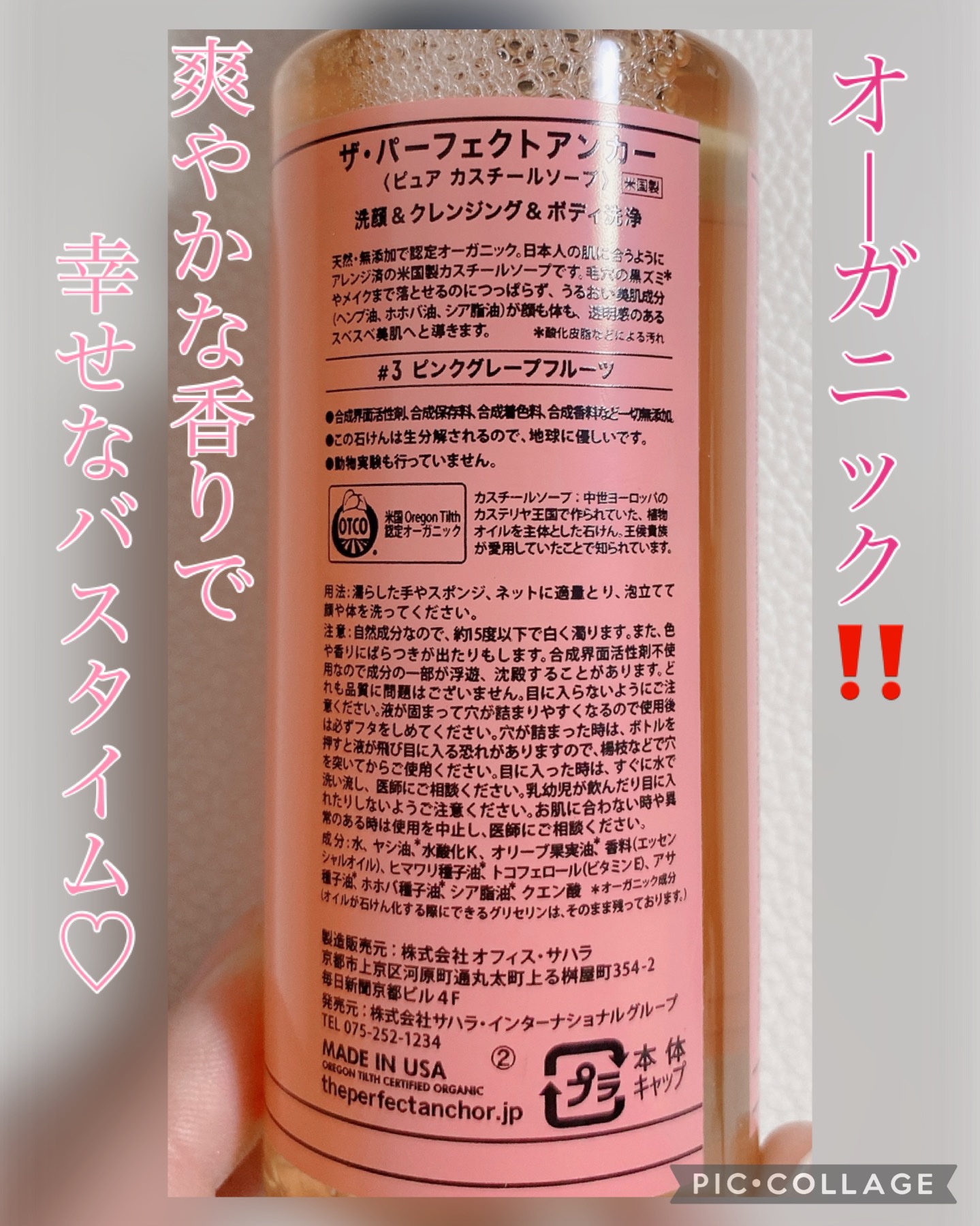 - 100%天然・無添加で認定オーガニック。日本人の肌に合うようにアレンジ済みの、米国製カスチールソープです。毛穴の黒ズミ*やメイクまで落とせるのにつっぱらず、うるおい美肌成分(ヘンプ油・ホホバ油・シア脂油)が顔も体も、透明感のあるスベスベ美肌へと導きます。(*酸化皮脂などによる汚れ) カスチールソープ・・・中世ヨーロッパのカステリヤ王国で作られていた、植物オイルを主体とした石けん。王侯貴族が愛用していたことでで知られています。 香りは、合成香料ではなく、アロマ精油を使用しています。つまり、洗顔や入浴の時間が贅沢なアロマの癒し時間にもなります。 ピンクグレープフルーツ・・・もぎたて果実のようなジューシーな香り。幸せな気持ちに。