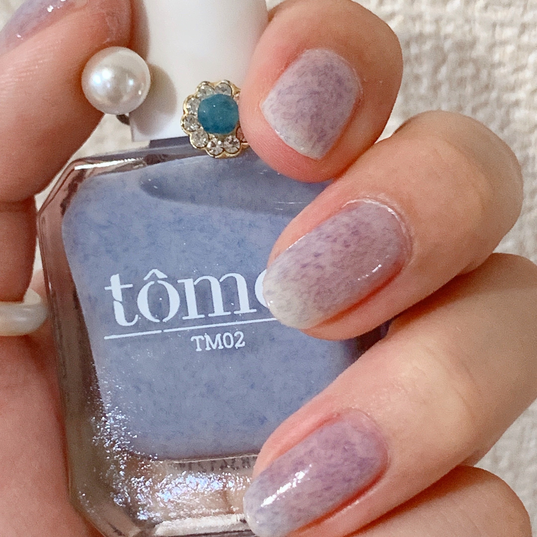 カラー自体も透明感が爆発しててめちゃ好みでした😍 ホワイトなライラックカラーに青い繊維が入ってて、 まさにカラー名の「ラムネジェラート」っていうのが ぴったりな爽やかなカラーです🩵 自爪が透けるくらい薄づきなので、写真は2度塗りしてますが、好みや気分によって塗り重ねる回数を使い分けるといいかも❣️
