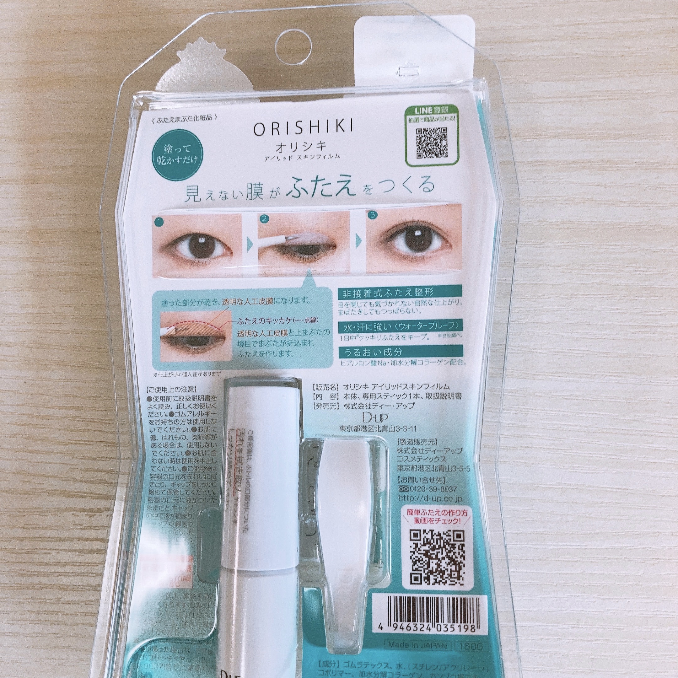 - 2020年6月3日 膜が強くなってリニューアル発売! 塗って乾かすだけのふたえ整形フィルム。見えない膜がふたえをつくり、自然なふたえが完成します。非接着タイプでまぶたを貼り付けないので、目を閉じても自然な仕上がり。まばたきしてもつっぱりません。水・汗に強いウォータプルーフでクッキリふたえをキープ。うるおい成分のヒアルロン酸・コラーゲン配合。