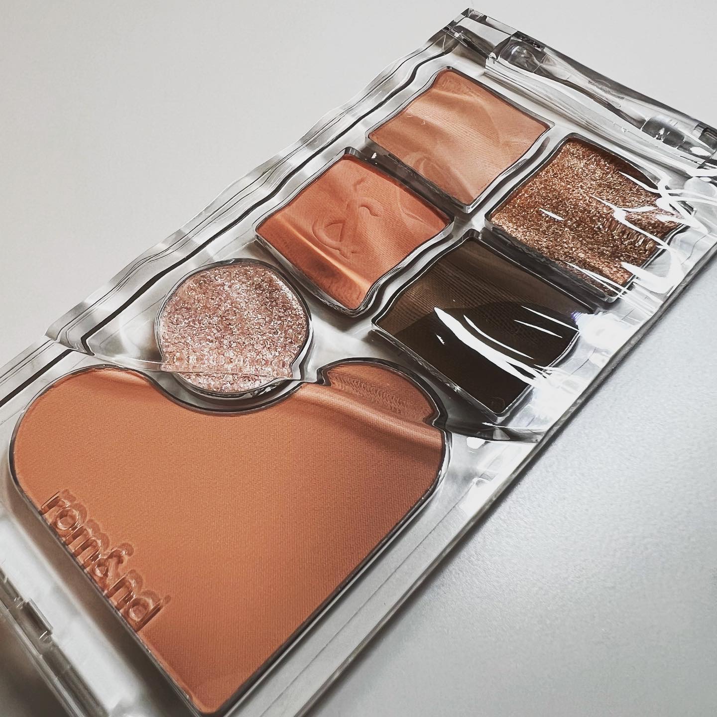 可愛さはさることながら、汎用性が高そうでお迎え✨ 気分で重ねるラメやグリッター、締め色も選べてこれ一つで沢山楽しめて良い🥰 更にチークもあるのが助かる! こちらはロムアンドのおうちで試して気になっていたお色! コーラルカラー系だと思うけど、しっかり黄味があるこういう色大好き😍 色が落ちてきても赤みが残ってくれて、血色が失われないのがまたいい感じ。 軽い塗り直しであれば色の淡いリップケア系で十分そう!