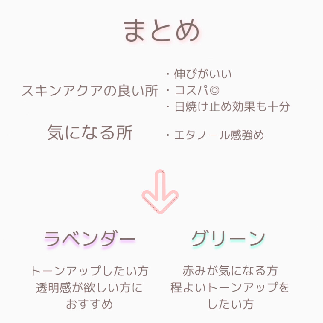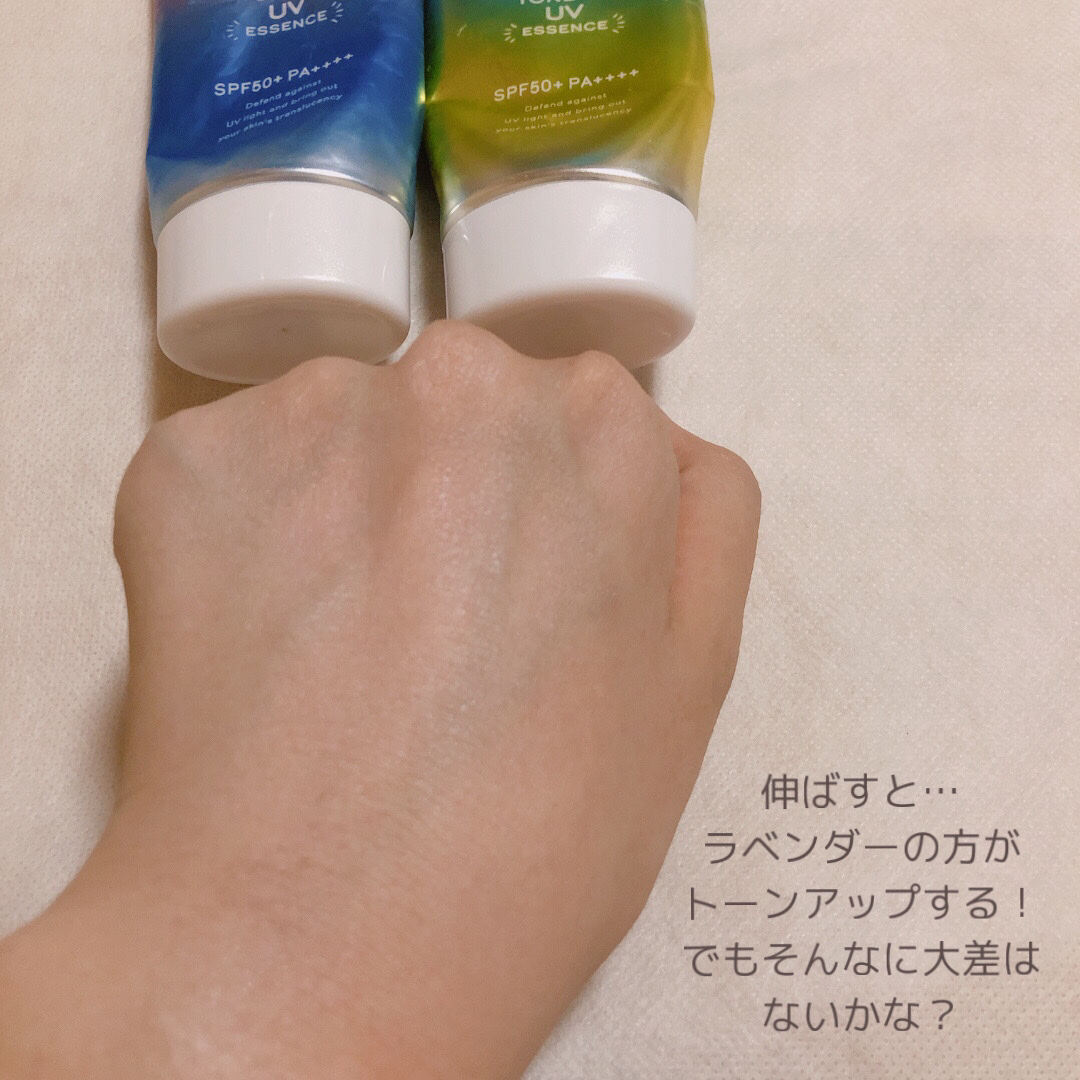 スキンアクアトーンアップUVエッセンスブルー&ラベンダー私愛用の日焼け止めです!いつもはラベンダーを使用していたのですが今年新発売のブルーの日焼け止めも使用しています!どちらも塗るだけでトーンアップするので周りから肌白いねと褒めていただけます...