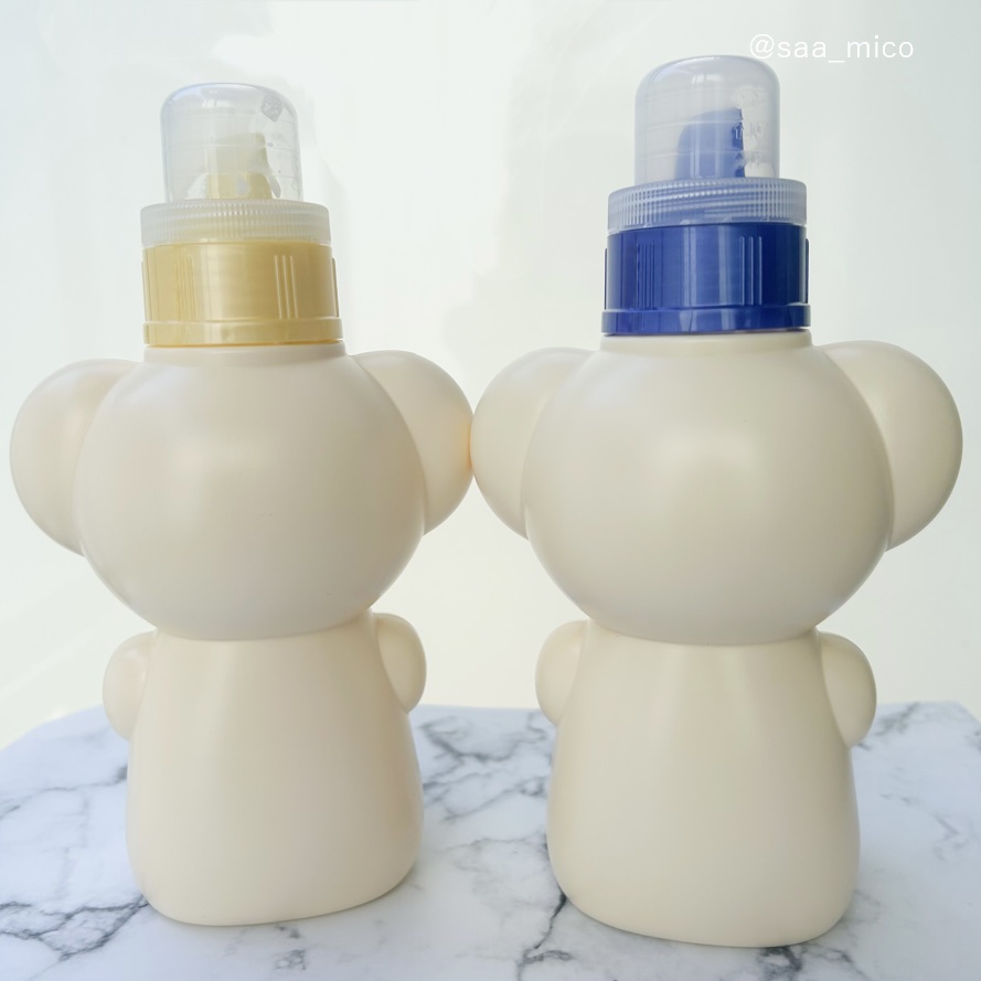 限定のくまさんボトルが可愛すぎて 我が家は洗濯機に直入れするのでボトル関係ないにも関わらず(笑) Amazonでポチってしまいました😂 しっかり香るので匂いの持続力重視派さんに! どちらもあまりクセのない香り 洗面所に置いているとすごく可愛くて とにかく癒されるボトル…♡