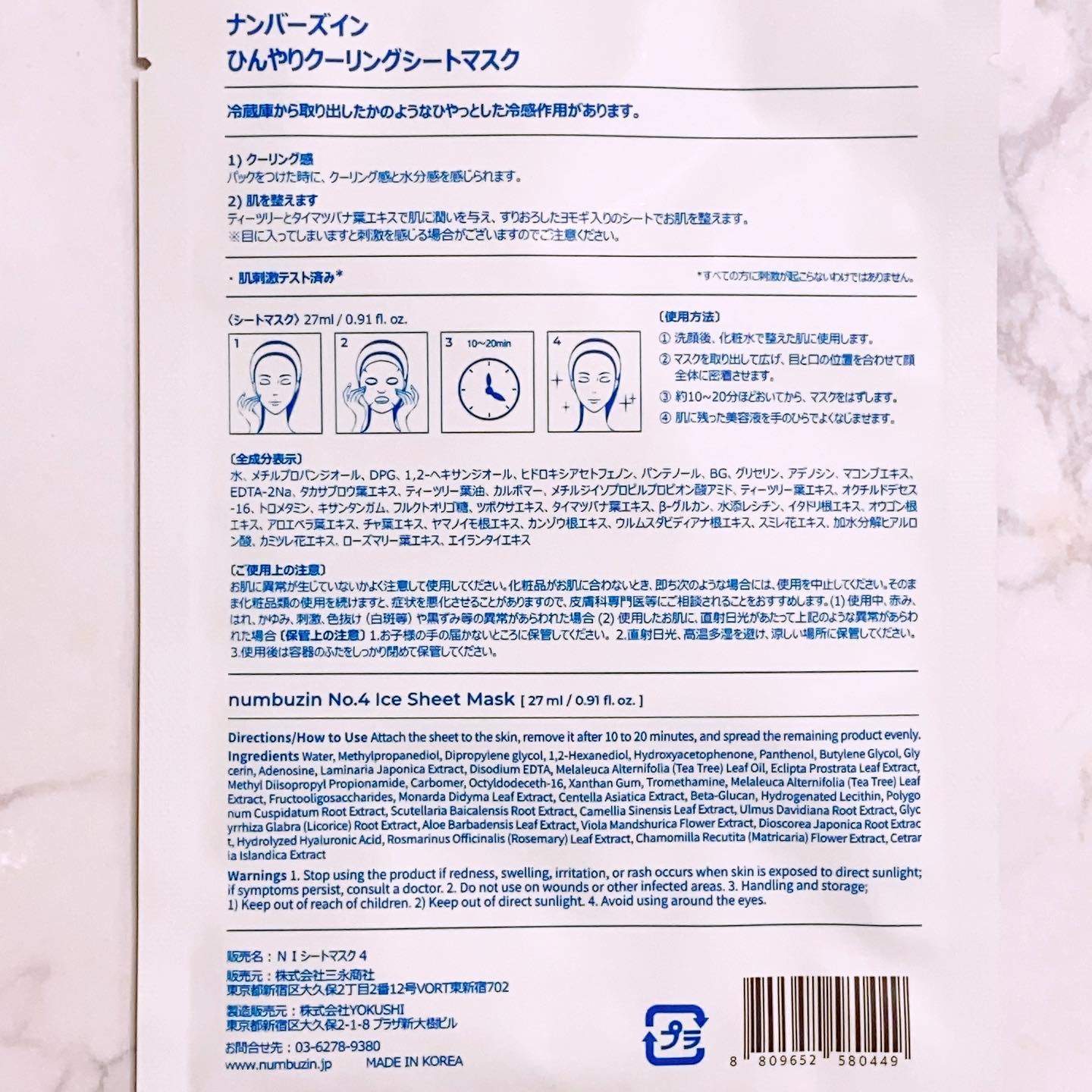 商品詳細情報numbuzin 4番 ひんやりクーリングシートマスク