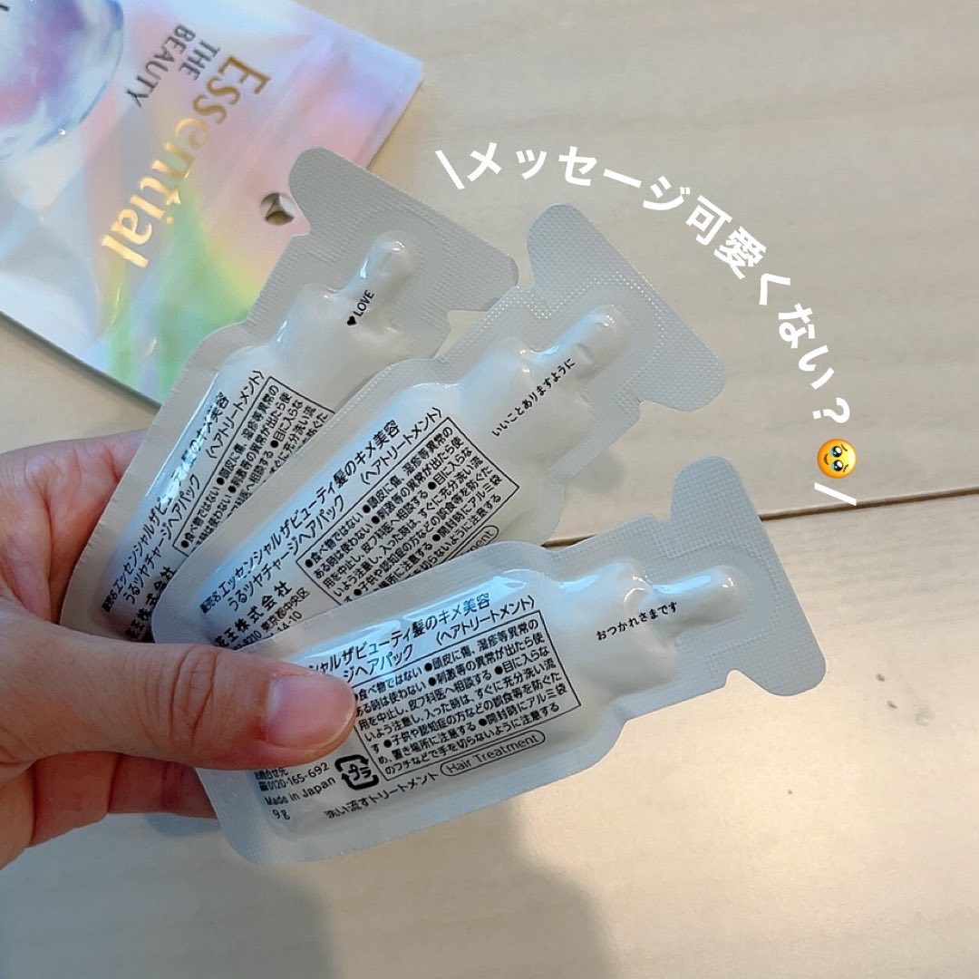 エッセンシャル🌿ザビューティうるツヤチャージヘアパックドラッグストアで買えるお手軽優秀アイテム髪に週1チャージで、サロン帰りのような美しい髪*1へ導くトリートメント。ハイダメージ*2を芯まで集中補修。髪表面のキューティクルを補修しキューティク...