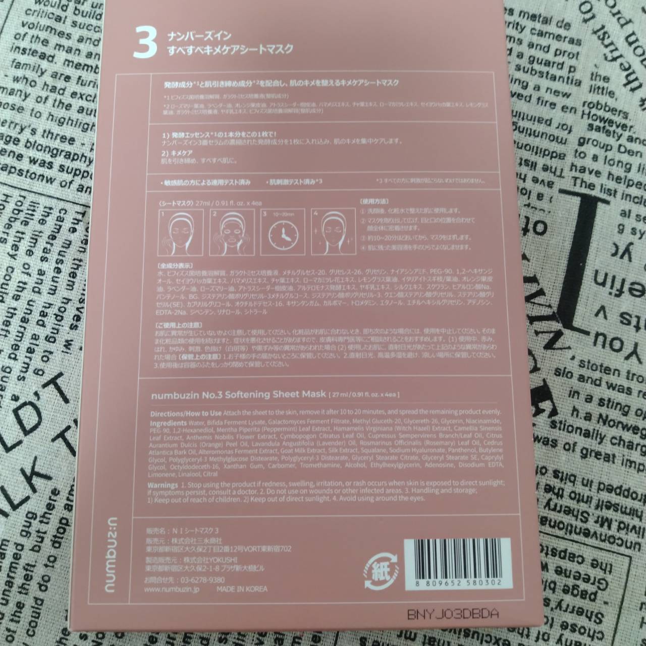 商品詳細情報numbuzin 3番 すべすべキメケアシートマスク