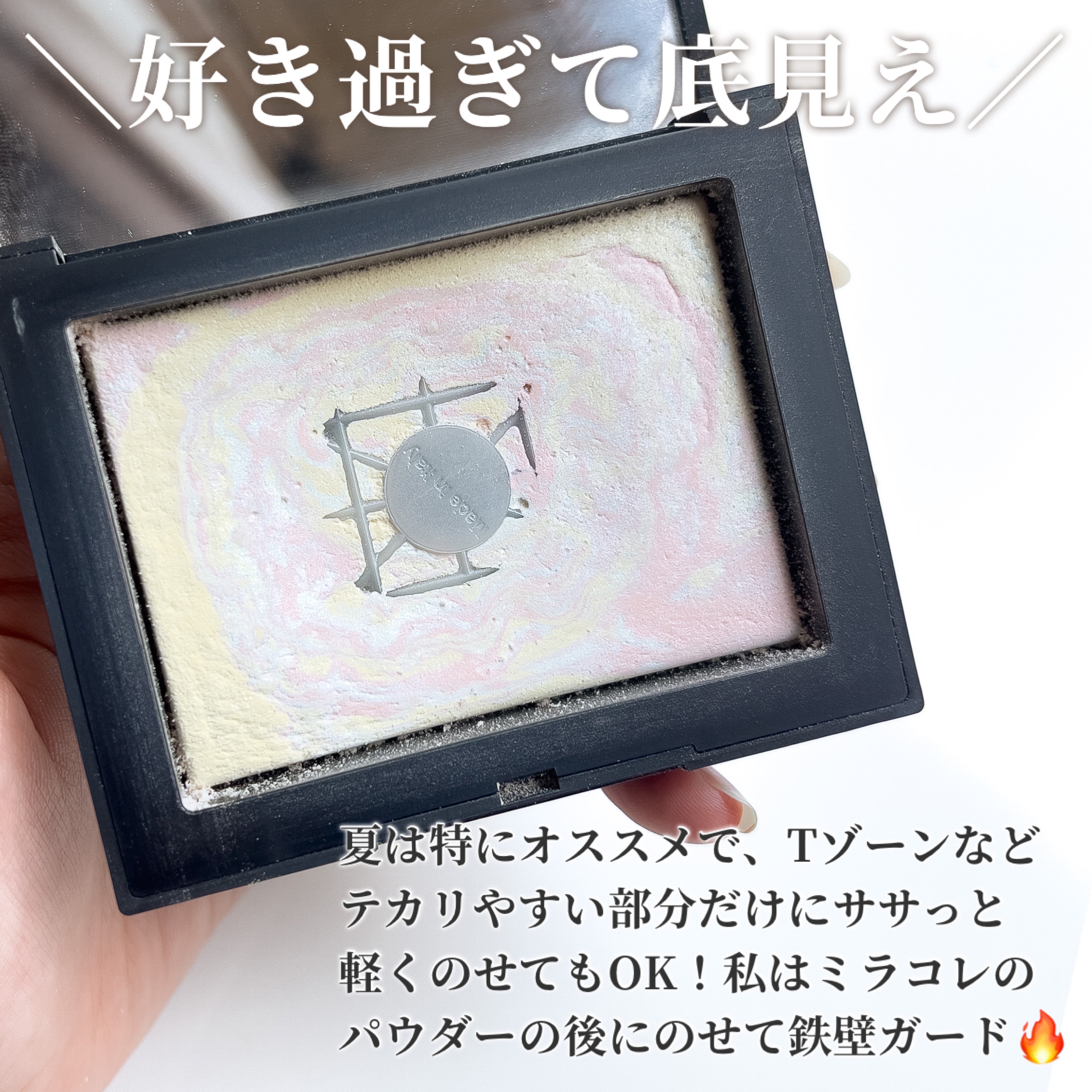 特に今の時期皮脂とかで崩れやすく Tゾーンがテカるのよ〜って人は是非✨ 油分の少ないプレストタイプならではの 肌をつい触りたくなるようなサラサラ感と ほんのり光るパールでくすみや毛穴を ボカしてくれる所は本当にオススメ🪄 サラサラなのに艶が出るのはさすがです👏🏻 夏はほんとお守りコスメで 秋冬はお休みすることが多いけど 1個持ってて損しないリフ粉✨