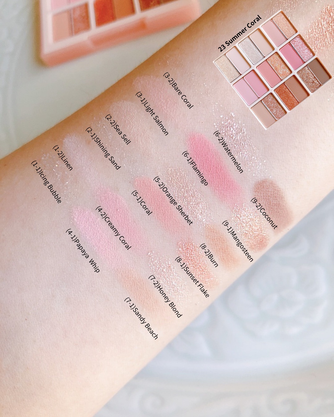************dasiqueシャドウパレット23SummerCoralデイジークのアイシャドウってどれもかわいい♡夏にぴったりなキラッキラコーラルアイシャドウをいただきました☀️9色パレットをさらに半分ずつにして18色!!マットとキ...