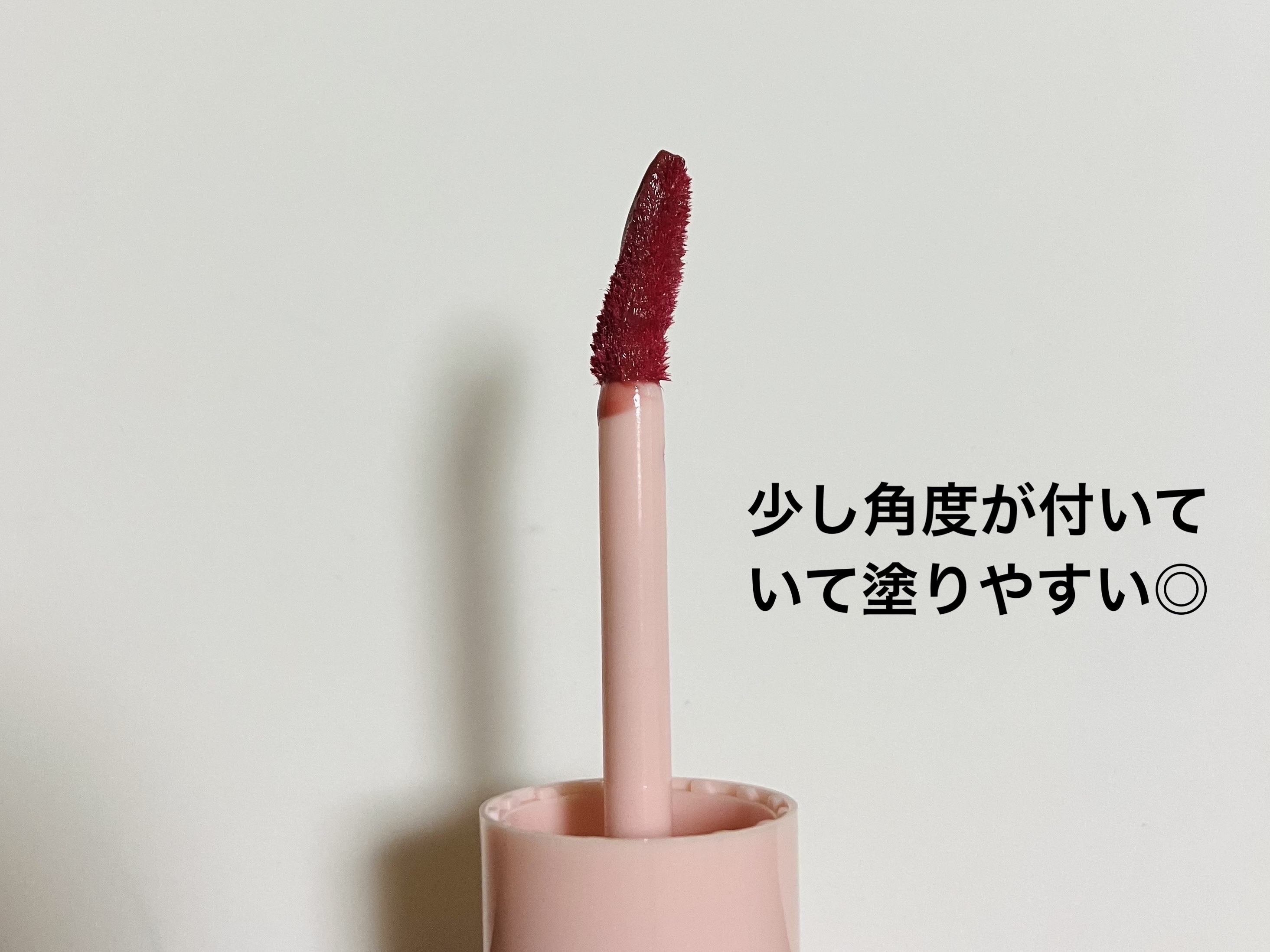 ラメなどは入っていませんが、ツヤのある仕上がりになります。 普通に1度塗りした状態では唇だけ目立ってしまいましたが、軽くティッシュオフしたらちょうど良い色味でツヤ感も残ってくれました💕 リップモンスターはティッシュオフした時乾燥が気になってしまったのですが、このリップはそこまで乾燥しなかったです✨ どちらかというと良い部類だと思います! 飲み物を飲むとコップ等に若干色移りしますが唇の方はそこまで色が落ちている感じはなかったです。 塗った直後は落ちやすいですが、1時間程度置くと落ちにくくなる気がします! 引っかかりなくスルスル塗れるのですが、ぷっくり盛り上がった形が私には少し塗りづらく感じました…唇からよくはみ出してしまいます😓 シワに色素が入り込んでムラになりやすいところも少しイマイチでしたが、ティッシュオフすればそこまで目立ちませんでした。 色が可愛くてリップモンスターよりもやや乾燥しづらかったので、リピートありだと思いました!!