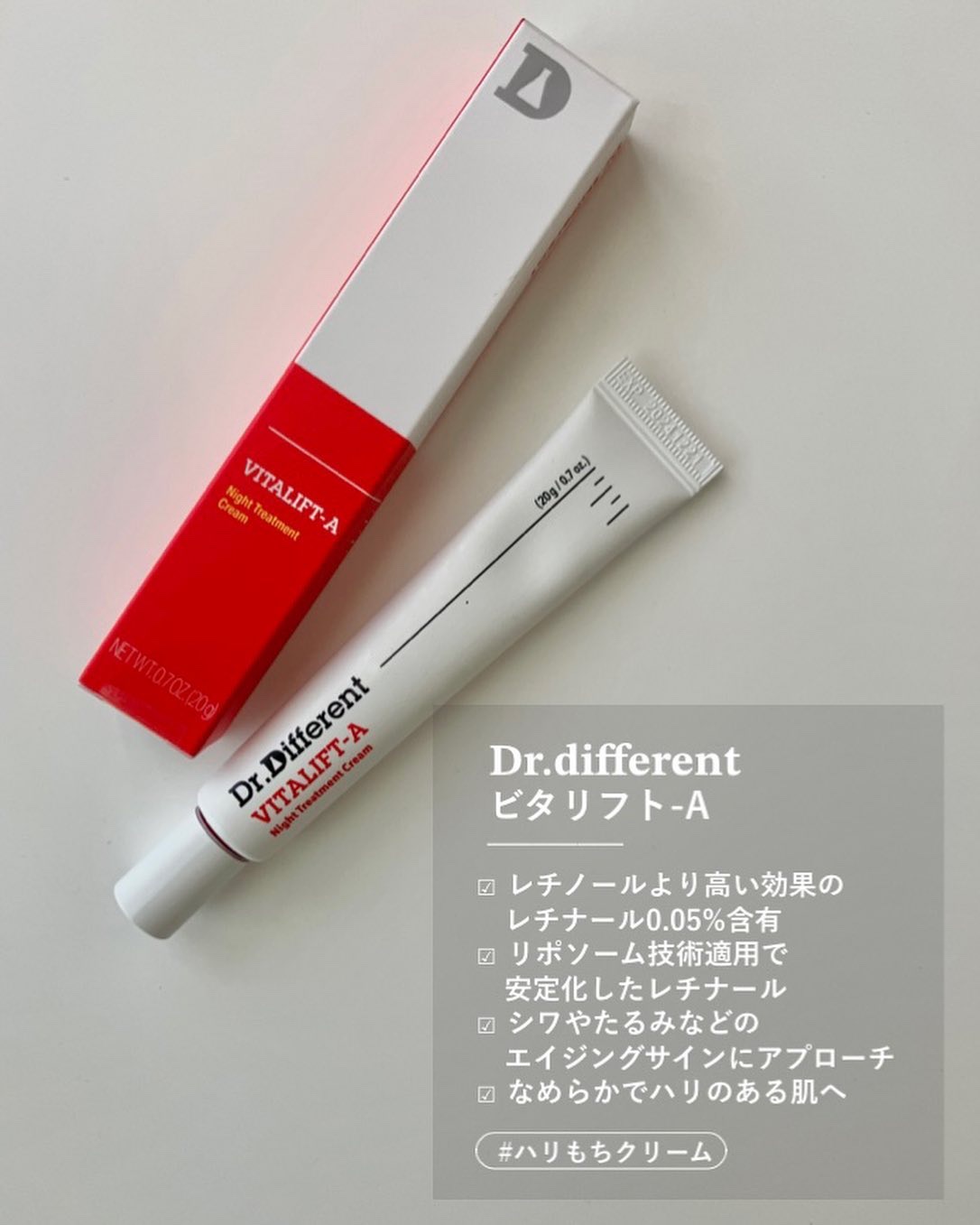 ドクターディファレント(Dr.Different)ビタリフト-Aフォルテナイトクリームを紹介💁🏼♀️塗ってしっかりケアしてくれるこっくりテクスチャーある日、急に気になり始めた小じわ何を塗ってもカサカサで元気のない肌へ使うたびピンとしたハリ感...