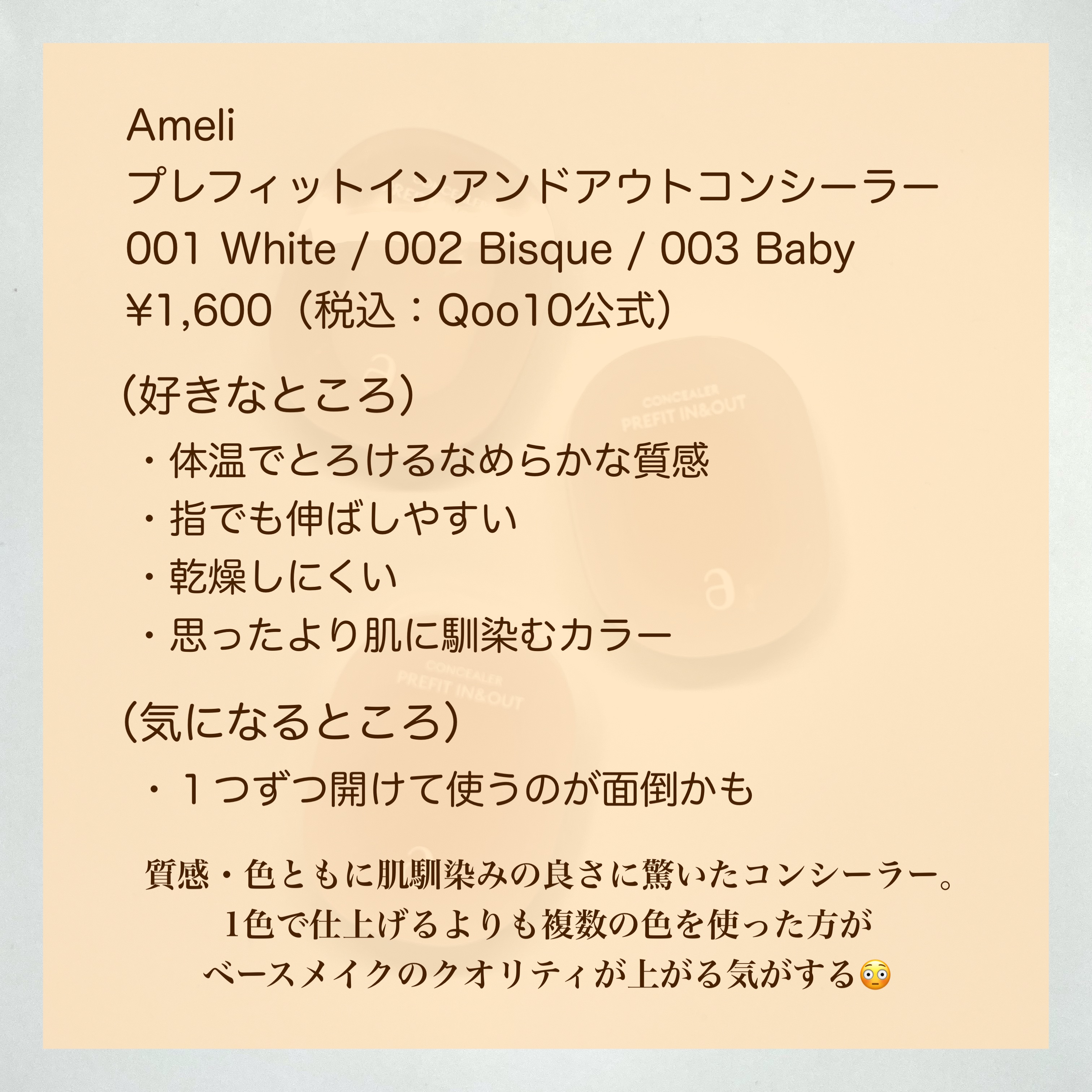 商品詳細情報Ameli プレフィットイン&アウトコンシーラー
