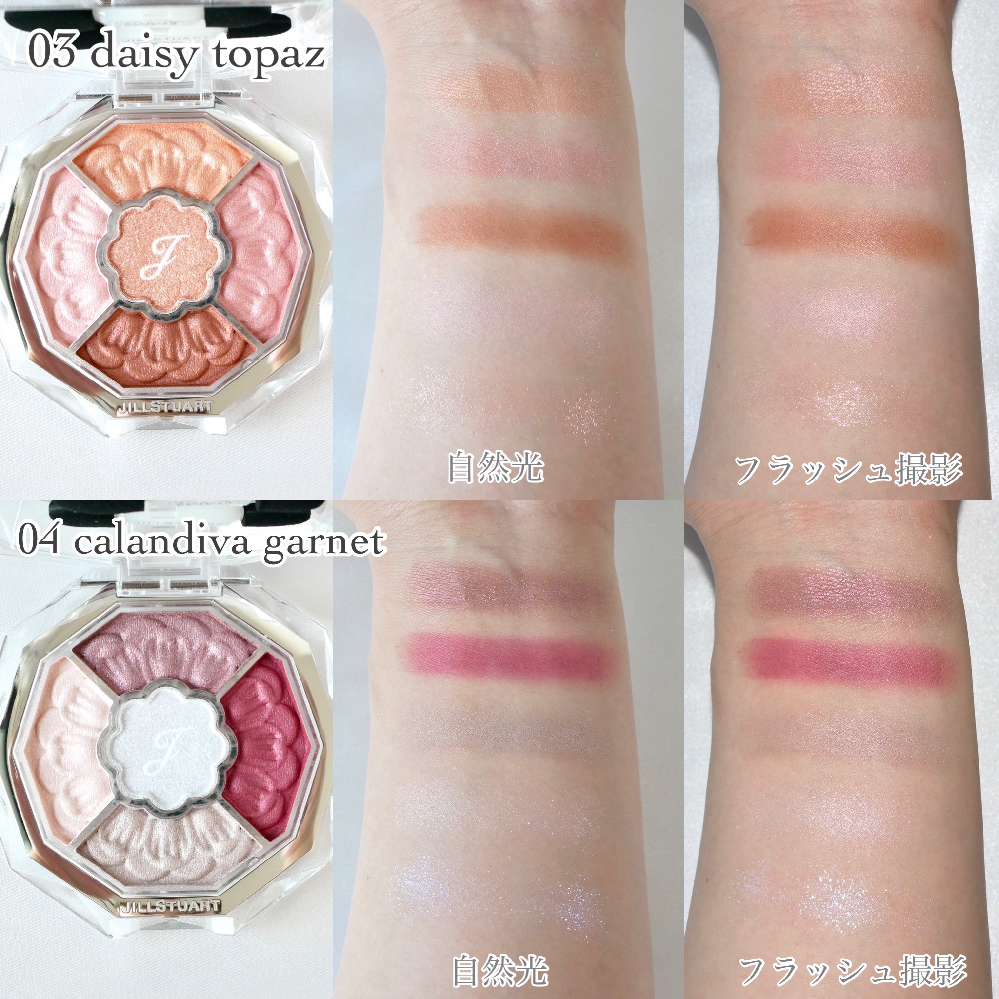 - <01 cymbidium cameo> ジメチコン、タルク、トリエチルヘキサノイン、ホウケイ酸(Ca/Al)、リンゴ酸ジイソステアリル、ラウロイルリシン、ダイマージリノール酸(フィトステリル/イソステアリル/セチル/ステアリル/ベヘニル)、(HDI/PPG/ポリカプロラクトン)クロスポリマー、メタクリル酸メチルクロスポリマー、トリメリト酸トリトリデシル、ステアロイルオキシステアリン酸オクチルドデシル、シリカ、ミネラルオイル、アボカド油、アンズ核油、トコフェロール、ラベンダー油、ローズマリー葉エキス、BHT、(ジメチコン/ビニルジメチコン)クロスポリマー、(ビニルジメチコン/ラウリルジメチコン)クロスポリマー、アモジメチコン、アルミナ、イソドデカン、エチルヘキサン酸セチル、エチルヘキシルグリセリン、オクチルドデカノール、ステアリン酸Mg、ステアリン酸オクチルドデシル、セスキイソステアリン酸ソルビタン、トリエトキシカプリリルシラン、ナイロン-12、ヘキサ(ヒドロキシステアリン酸/ステアリン酸/ロジン酸)ジペンタエリスリチル、ポリメタクリル酸メチル、ワセリン、合成フルオロフロゴパイト、酸化スズ、水酸化Al、水添ポリイソブテン、クロルフェネシン、香料、グンジョウ、コンジョウ、マイカ、酸化チタン、酸化亜鉛、酸化鉄、硫酸Ba、黄4、赤226 <02 viola amethyst> タルク、ジメチコン、トリエチルヘキサノイン、ホウケイ酸(Ca/Al)、リンゴ酸ジイソステアリル、ラウロイルリシン、ダイマージリノール酸(フィトステリル/イソステアリル/セチル/ステアリル/ベヘニル)、(HDI/PPG/ポリカプロラクトン)クロスポリマー、メタクリル酸メチルクロスポリマー、トリメリト酸トリトリデシル、ステアロイルオキシステアリン酸オクチルドデシル、ミネラルオイル、シリカ、アボカド油、アンズ核油、トコフェロール、ラベンダー油、ローズマリー葉エキス、BHT、(ジメチコン/ビニルジメチコン)クロスポリマー、(ビニルジメチコン/ラウリルジメチコン)クロスポリマー、アモジメチコン、イソドデカン、エチルヘキサン酸セチル、エチルヘキシルグリセリン、オクチルドデカノール、ステアリン酸Mg、ステアリン酸オクチルドデシル、セスキイソステアリン酸ソルビタン、トリエトキシカプリリルシラン、ナイロン-12、ヘキサ(ヒドロキシステアリン酸/ステアリン酸/ロジン酸)ジペンタエリスリチル、ホウケイ酸(Ca/Na)、ポリメタクリル酸メチル、ワセリン、合成フルオロフロゴパイト、酸化スズ、水酸化Al、水添ポリイソブテン、クロルフェネシン、香料、(PET/ポリメタクリル酸メチル)ラミネート、グンジョウ、マイカ、酸化チタン、酸化亜鉛、酸化鉄、赤226 <03 daisy topaz> タルク、ジメチコン、トリエチルヘキサノイン、ホウケイ酸(Ca/Al)、リンゴ酸ジイソステアリル、ラウロイルリシン、ダイマージリノール酸(フィトステリル/イソステアリル/セチル/ステアリル/ベヘニル)、(HDI/PPG/ポリカプロラクトン)クロスポリマー、メタクリル酸メチルクロスポリマー、トリメリト酸トリトリデシル、ステアロイルオキシステアリン酸オクチルドデシル、ミネラルオイル、アボカド油、アンズ核油、トコフェロール、ラベンダー油、ローズマリー葉エキス、BHT、(ジメチコン/ビニルジメチコン)クロスポリマー、(ビニルジメチコン/ラウリルジメチコン)クロスポリマー、アモジメチコン、イソドデカン、エチルヘキサン酸セチル、エチルヘキシルグリセリン、オクチルドデカノール、シリカ、ステアリン酸Mg、ステアリン酸オクチルドデシル、セスキイソステアリン酸ソルビタン、トリエトキシカプリリルシラン、ナイロン-12、ヘキサ(ヒドロキシステアリン酸/ステアリン酸/ロジン酸)ジペンタエリスリチル、ポリメタクリル酸メチル、ワセリン、合成フルオロフロゴパイト、酸化スズ、水酸化Al、水添ポリイソブテン、クロルフェネシン、香料、グンジョウ、マイカ、酸化チタン、酸化亜鉛、酸化鉄、黄4、赤226 <04 calandiva garnet> タルク、ジメチコン、トリエチルヘキサノイン、ホウケイ酸(Ca/Al)、リンゴ酸ジイソステアリル、ラウロイルリシン、ダイマージリノール酸(フィトステリル/イソステアリル/セチル/ステアリル/ベヘニル)、(HDI/PPG/ポリカプロラクトン)クロスポリマー、メタクリル酸メチルクロスポリマー、ホウケイ酸(Ca/チタン)、トリメリト酸トリトリデシル、シリカ、ステアロイルオキシステアリン酸オクチルドデシル、合成フルオロフロゴパイト、ミネラルオイル、ホウケイ酸(Ca/Na)、アボカド油、アンズ核油、トコフェロール、ラベンダー油、ローズマリー葉エキス、BHT、(ジメチコン/ビニルジメチコン)クロスポリマー、(ビニルジメチコン/ラウリルジメチコン)クロスポリマー、アモジメチコン、イソドデカン、エチルヘキサン酸セチル、エチルヘキシルグリセリン、オクチルドデカノール、ステアリン酸Mg、ステアリン酸オクチルドデシル、セスキイソステアリン酸ソルビタン、トリエトキシカプリリルシラン、ナイロン-12、ヘキサ(ヒ