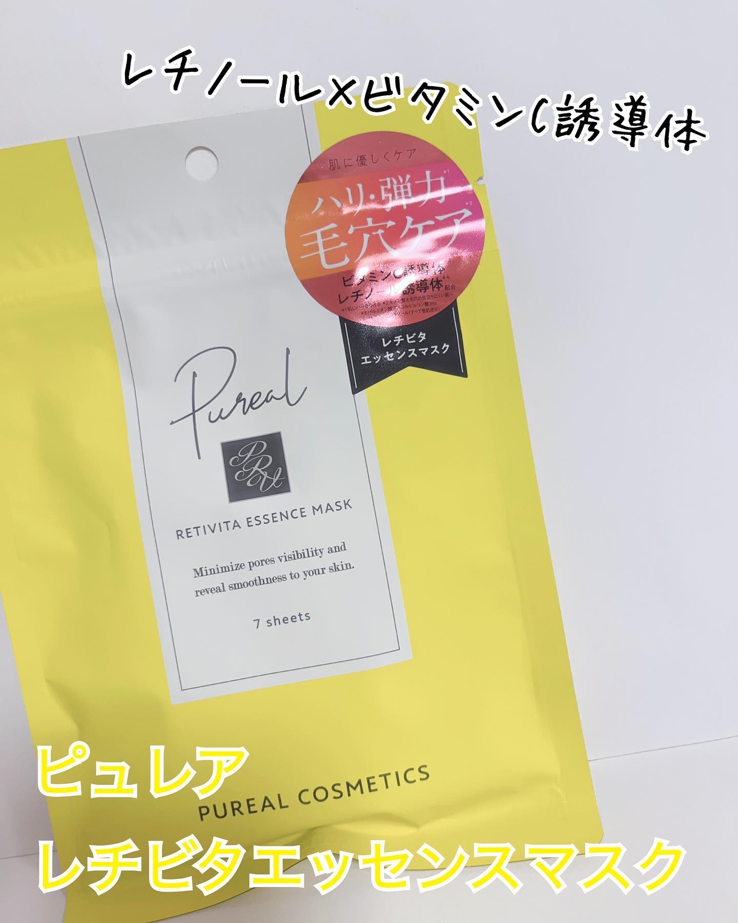 \\\毛穴ケアしながらぷりぷりお肌に✨///『ピュレアレチビタエッセンスマスク』ピュレアの黄色🟡お試しに1枚入りを使ってみたらピュレア史上1番好みでした♡♡♡すぐさま追加で7枚入りを購入!気に入ってしまったので早速投稿にしましたよ(^^)ー*...