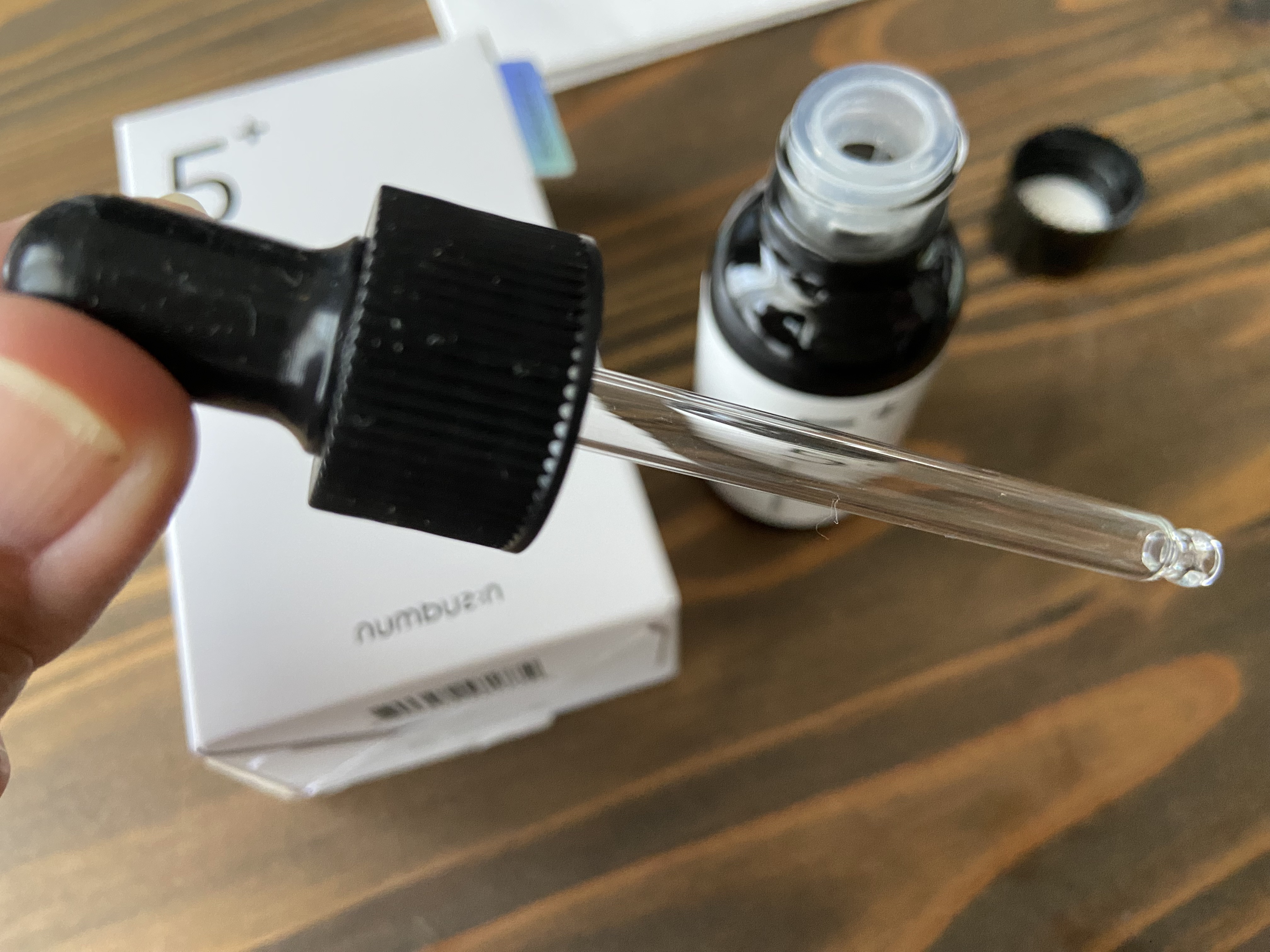 スポイトが使いやすい👍 使用方法は、朝晩、トナーの次のステップで肌にやさしく馴染ませます。 とろりとしたテクスチャで、肌馴染み良し‼️ ベタつきもなく、匂いはほぼ無臭です👍 元々、前からナンバーズインさんの3番のトナーを愛用しているので、ライン使いで使用していますが、でこぼこ毛穴をなめらかなきめ肌になることを期待しています^_^