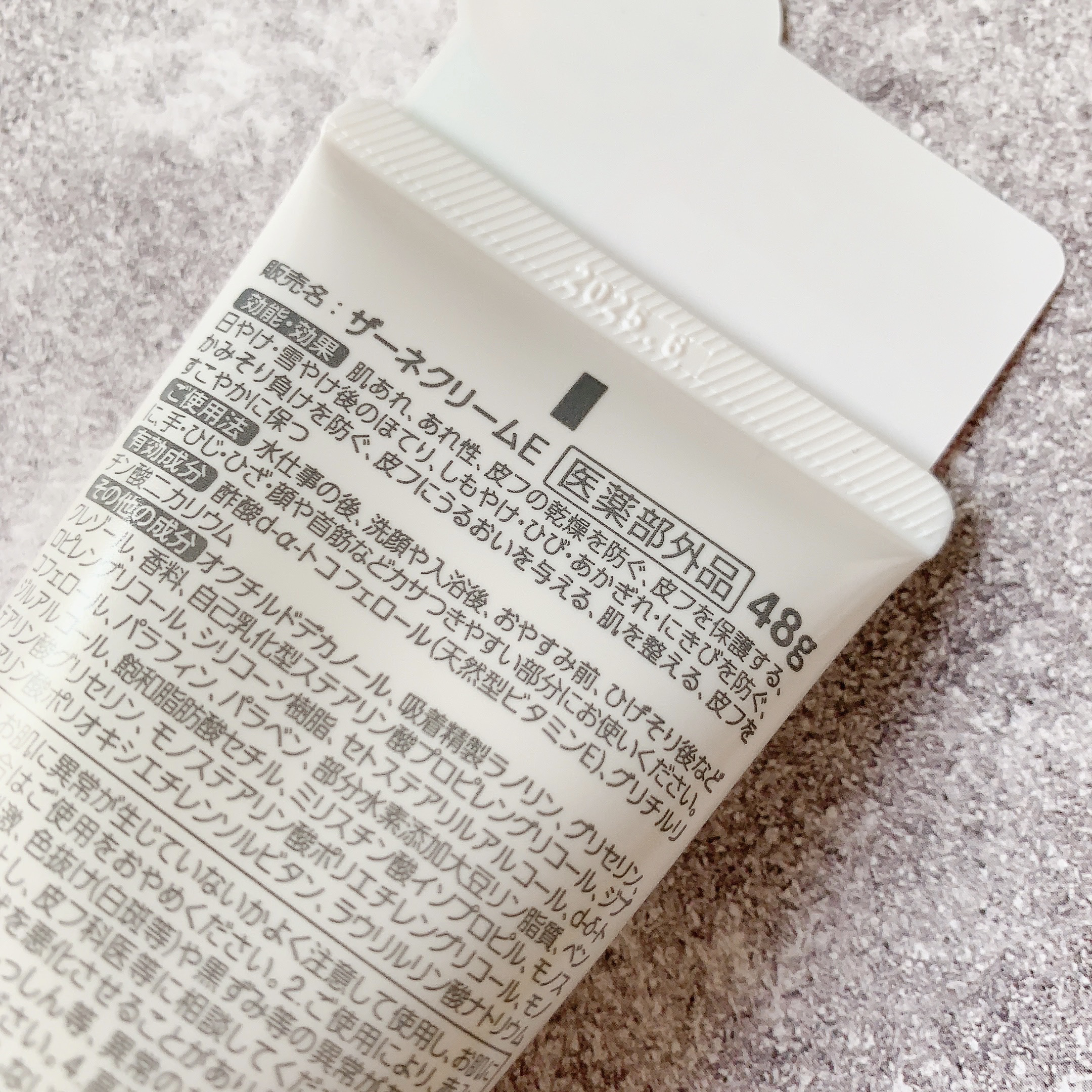 - 【医薬部外品】 おやすみ前の“ビタミンE塗り”で顔も手指もしっとりなめらかに 「ザーネクリーム」で「めぐらせ保湿」。天然型ビタミンEのチカラで肌の血行を促進し、必要な栄養素を届け、ターンオーバーを整えることで、肌をすこやかに保ちます。 しっとりが続くのにベタつかないテクスチャー。肌の刺激にも配慮 製薬会社として外用剤や皮膚生理機能の研究で培ってきた知見をベースに、肌への効果とテクスチャーの両立を追求。 クリーム基剤のノウハウを活かした処方技術により、しっとりが続くのにベタつきません。 塗ってすぐPC・スマートフォン操作や家事もOKです。 また、人の肌の構成成分や、体温で融けやすい融点をもつ成分など、肌との親和性の高い成分を配合し、肌の刺激にも配慮した処方設計です。 香りもマイルドなので、シーンを選ばずお使いいただけます。 有効成分 :天然型ビタミンE、グリチルリチン酸二カリウム(消炎成分) 効能・効果 :肌あれ、あれ性、皮フの乾燥を防ぐ、皮フを保護する、日やけ・雪やけ後のほてり、しもやけ・ひび・ あかぎれ・にきびを防ぐ、かみそり負けを防ぐ、皮フにうるおいを与える、肌を整える、皮フをすこやかに保つ