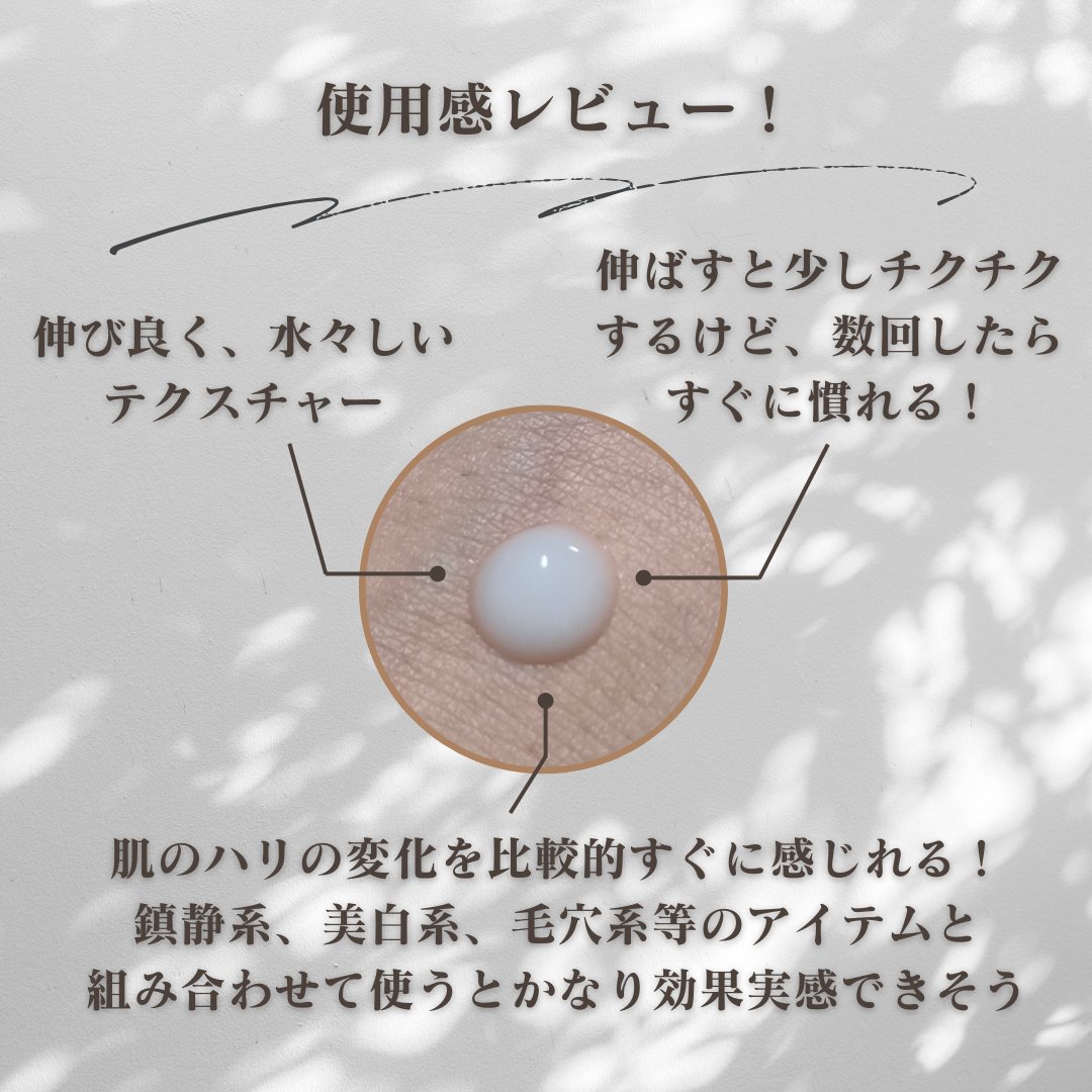 化粧水前に塗布しても、特に効果を感じれなかった。 個人的には塗布有りと無しで差を感じれなかったので、リピは無しかなーという感じです! 化粧水の浸透を高める目的ではなく、導入化粧液→美容液→乳液・クリームという使い方であれば、まだ効果を感じやすいかも? ジャバシャバかつ成分的にも化粧水を重ねて使う必要はなさそう! 使ったことがない人はトライしても見ても良いかも? 口コミでは効果を感じたとの声も多かったので!