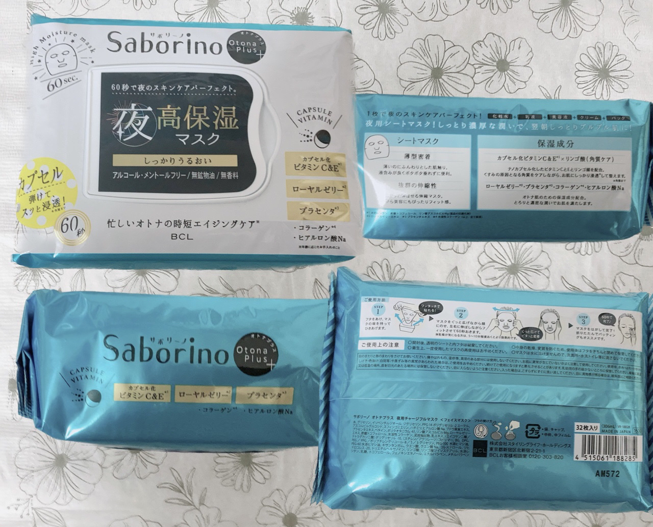 ※旧品※2025年使用品シートマスク・商品名サボリーノオトナプラス 夜用チャージフルマスクホワイト5枚入り49mL 夜用チャージフルマスク5枚入り48mL・値段定価495円(250円で購入)・購入場所COOP・評価★★☆☆☆アルコール、メント...