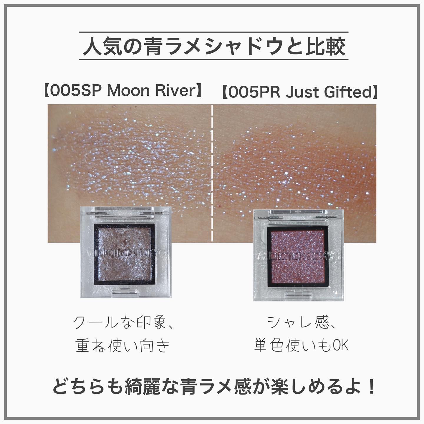 Diorらしい華やかなギランギラン系からヘルシーな艶系まで多様なラメが一つのパレットに濃縮🎨 ツヤ控えめなピンクやコーラルはチークっぽく使えるし、華やかなホワイトやブルーは華やかさがすんごい✨ ヘルシーも華やかも楽しめるし、カラー的にもこれは買ってよかった🥹