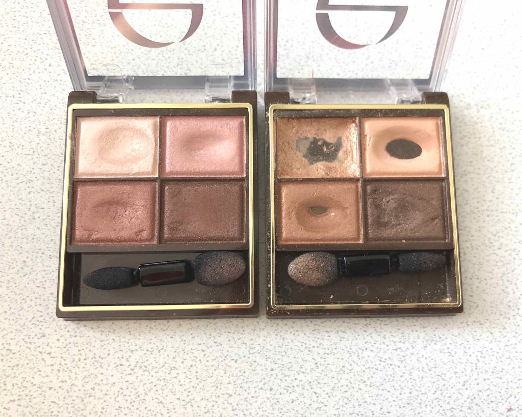 ブラウン、ベージュのみの捨て色なし4色アイシャドウパレットです。 粉質はしっとりしていて発色も良く色持ちもいいです。 仕上がりもナチュラルでオフィスメイクに良さそうです。