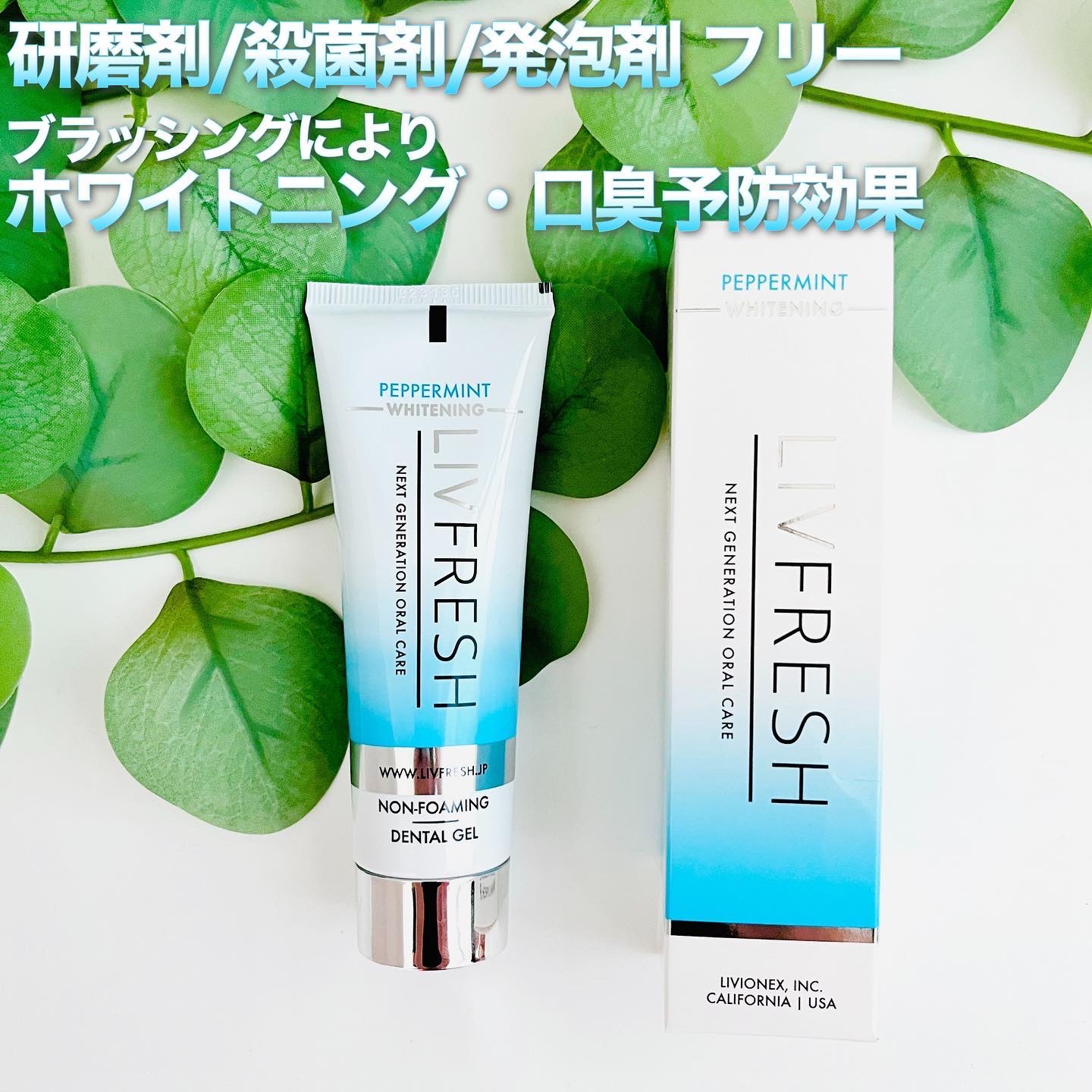 リブフレッシュオーラルジェルは、ブラッシング効果によりバイオフィルム(汚れ)を除去して歯をツヤツヤ・ツルツルに! ジェルだから泡立たないけど、しっかり歯みがきができるのがポイント☆ 余分なものが入っていないシンプル処方で、無研磨・無発泡・無殺菌剤! 綺麗なブルーのクリアジェルで爽やかなイメージ♪ さらに、ブラッシング効果により歯をホワイトニングする歯みがきジェル。 ジェルで隅々まで歯磨きしたら、ペパーミントでお口がすっきり♪