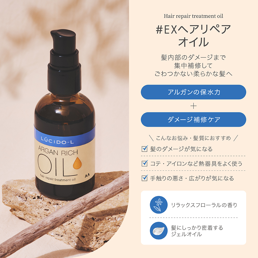 ルシードエルのアルガンオイルは、高い保水力をもつアルガンオイル*を使用し、芯からうるおいに満ちたツヤ髪に。6種類の中からあなたの髪悩みに合わせて選べます💝*アルガニアスピノサ核油(保湿成分)#ルシードエル#lucidol#EXヘアオイル#EX...