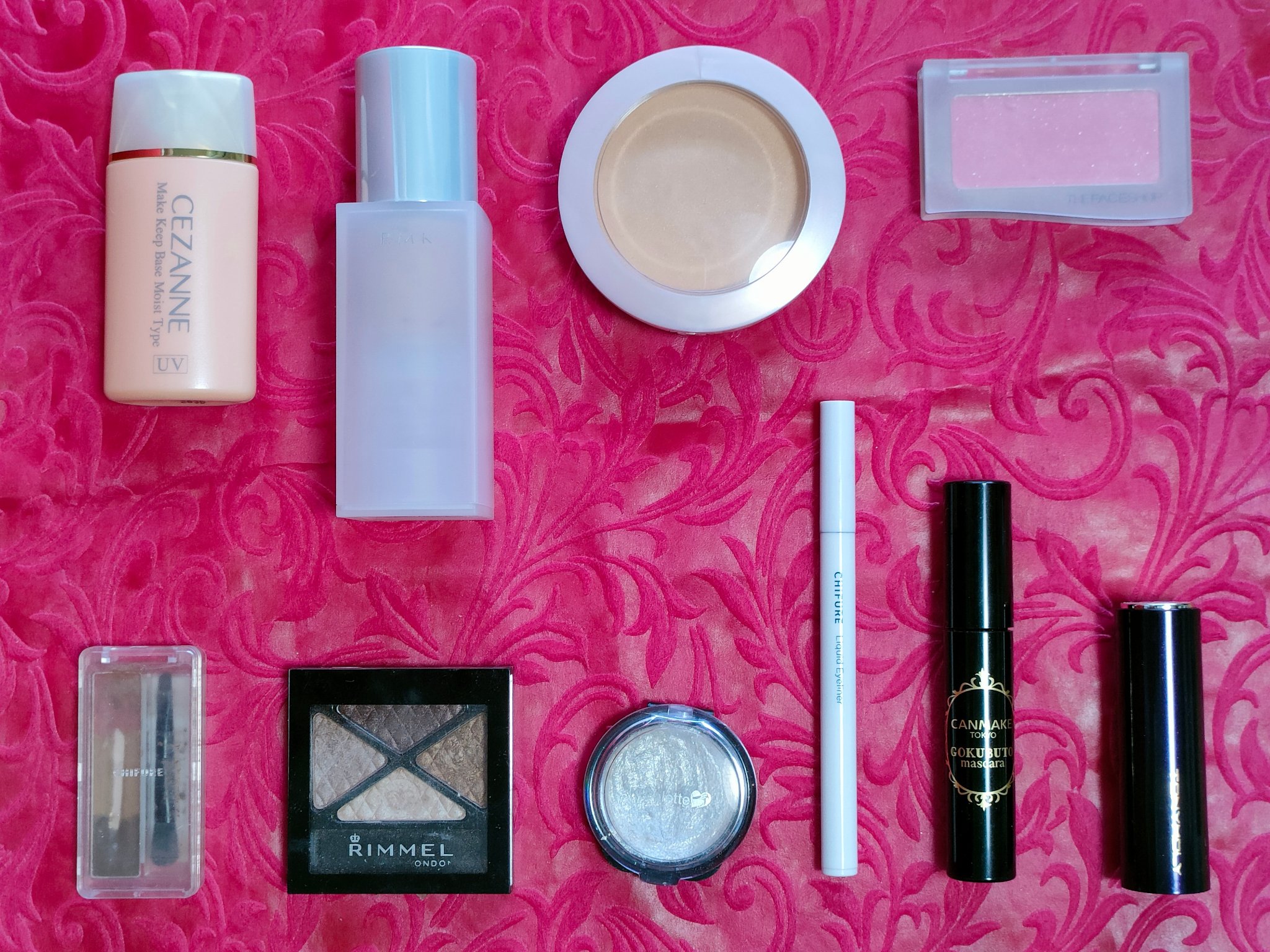 アリィー ニュアンスチェンジUV ジェル RSを、顔全体にまんべんなく塗ります。 RMK RMK ジェルクリーミィファンデーション 103を、顔全体にまんべんなく塗ります。 ジョンソンベビー ジョンソン ベビーパウダーを、顔全体にまんべんなく軽くはたきます。 THE BODY SHOP bronze shade warm glowを、両頬に塗ります。 KATE リフレクトミラーアイズ BR-1の締め色を、眉毛全体にまんべんなく塗ります。 URGLAM UR GLAMBLOOMING EYE COLOR PALETTE 01を、使用しました。 ちふれ リキッド アイライナー 筆ペンタイプ BK30 ブラックを、塗ります。 CEZANNE エアリーカールマスカラを、まつ毛全体にまんべんなく塗ります。 MAYBELLINE NEW YORK コロッサルボリュームエクスプレスを、まつ毛全体にまんべんなく塗ります。 MAYBELLINE NEW YORK SPステイ マットインク 135を、唇全体にまんべんなく塗ります。