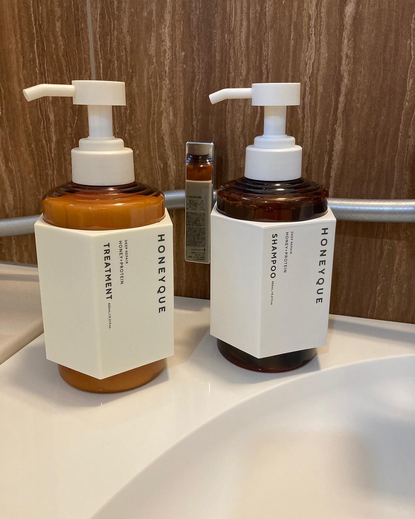 - <シャンプー本体 450ml> 水、ラウロイルメチルアラニンNa、ラウラミドプロピルベタイン、コカミドメチルMEA、グリセリン、ココイルメチルタウリンNa、ハチミツ、加水分解乳タンパク、加水分解ダイズタンパク、加水分解ローヤルゼリータンパク、アーモンド油、マンゴー種子脂、アンズ核油、ジラウラミドグルタミドリシンNa、シクロヘキサン-1,4-ジカルボン酸ビスエトキシジグリコール、加水分解ウールキューティクルタンパク、ステアルジモニウムヒドロキシプロピル加水分解ケラチン(羊毛)、イソステアロイル加水分解ケラチン(羊毛)、ココイル加水分解ケラチンK(羊毛)、(ジヒドロキシメチルシリルプロポキシ)ヒドロキシプロピル加水分解シルク、ヒアルロン酸ヒドロキシプロピルトリモニウム、カルボキシメチルヒアルロン酸Na、加水分解ゴマタンパクPGプロピルメチルシランジオール、ラウロイルグルタミン酸ジ(フィトステリル/オクチルドデシル)、ポリクオタニウム-47、ポリクオタニウム-10、イソノナン酸イソノニル、ステアラミドプロピルジメチルアミン、PPG-7、メトキシケイヒ酸エチルヘキシル、ジエチルアミノヒドロキシベンゾイル安息香酸ヘキシル、水酸化K、EDTA-2Na、グルコノラクトン、カラメル、メントール、ペンチレングリコール、BG、DPG、塩化Na、クエン酸、安息香酸Na、エタノール、フェノキシエタノール、香料 <トリートメント本体 450ml> 水、セテアリルアルコール、ジメチコン、ベヘントリモニウムクロリド、グリセリン、パルミチン酸エチルヘキシル、ハチミツ、加水分解乳タンパク(牛乳)、ダイズタンパク、加水分解ローヤルゼリータンパク、アーモンド油、アンズ核油、マンゴー種子脂、ジラウロイルグルタミン酸リシンNa、シクロヘキサン-1,4-ジカルボン酸ビスエトキシジグリコール、イソステアロイル加水分解ケラチン(羊毛)、ステアルジモニウムヒドロキシプロピル加水分解ケラチン(羊毛)、ヒアルロン酸ヒドロキシプロピルトリモニウム、カルボキシメチルヒアルロン酸Na、セラミドNG、セラミドNP、セラミドAP、ラウロイルグルタミン酸ジ(フィトステリル/オクチルドデシル)、ラウロイルグルタミン酸ジヘキシルデシル、γ-ドコサラクトン、クオタニウム-33(羊毛)、コレステロール(羊毛)、キトサンヒドロキシプロピルトリモニウムクロリド、シロキクラゲ多糖体、イソステアリルグリセリル、イソノナン酸イソノニル、ヒドロキシエチルセルロース、BG、PG、カラメル、ジステアリルジモニウムクロリド、セバシン酸ジエチル、ペンテト酸5Na、クエン酸、クエン酸Na、イソプロパノール、フェノキシエタノール、香料 <シャンプー詰替用 400ml> 水、ラウロイルメチルアラニンNa、ラウラミドプロピルベタイン、コカミドメチルMEA、グリセリン、ココイルメチルタウリンNa、ハチミツ、加水分解乳タンパク、加水分解ダイズタンパク、加水分解ローヤルゼリータンパク、アーモンド油、マンゴー種子脂、アンズ核油、ジラウラミドグルタミドリシンNa、シクロヘキサン-1,4-ジカルボン酸ビスエトキシジグリコール、加水分解ウールキューティクルタンパク、ステアルジモニウムヒドロキシプロピル加水分解ケラチン(羊毛)、イソステアロイル加水分解ケラチン(羊毛)、ココイル加水分解ケラチンK(羊毛)、(ジヒドロキシメチルシリルプロポキシ)ヒドロキシプロピル加水分解シルク、ヒアルロン酸ヒドロキシプロピルトリモニウム、カルボキシメチルヒアルロン酸Na、加水分解ゴマタンパクPGプロピルメチルシランジオール、ラウロイルグルタミン酸ジ(フィトステリル/オクチルドデシル)、ポリクオタニウム-47、ポリクオタニウム-10、イソノナン酸イソノニル、ステアラミドプロピルジメチルアミン、PPG-7、メトキシケイヒ酸エチルヘキシル、ジエチルアミノヒドロキシベンゾイル安息香酸ヘキシル、水酸化K、EDTA-2Na、グルコノラクトン、カラメル、メントール、ペンチレングリコール、BG、DPG、塩化Na、クエン酸、安息香酸Na、エタノール、フェノキシエタノール、香料 <トリートメント詰替用 400ml> 水、セテアリルアルコール、ジメチコン、ベヘントリモニウムクロリド、グリセリン、パルミチン酸エチルヘキシル、ハチミツ、加水分解乳タンパク(牛乳)、ダイズタンパク、加水分解ローヤルゼリータンパク、アーモンド油、アンズ核油、マンゴー種子脂、ジラウロイルグルタミン酸リシンNa、シクロヘキサン-1,4-ジカルボン酸ビスエトキシジグリコール、イソステアロイル加水分解ケラチン(羊毛)、ステアルジモニウムヒドロキシプロピル加水分解ケラチン(羊毛)、ヒアルロン酸ヒドロキシプロピルトリモニウム、カルボキシメチルヒアルロン酸Na、セラミドNG、セラミドNP、セラミドAP、ラウロイルグルタミン酸ジ(フィトステリル/オクチルドデシル)、ラウロイルグルタミン酸ジヘキシルデシル、γ-ドコサラクトン、クオタニウム-33(羊毛)、コレステロール(羊毛)、キトサンヒドロキシプロピルトリモニウムクロリド、シ