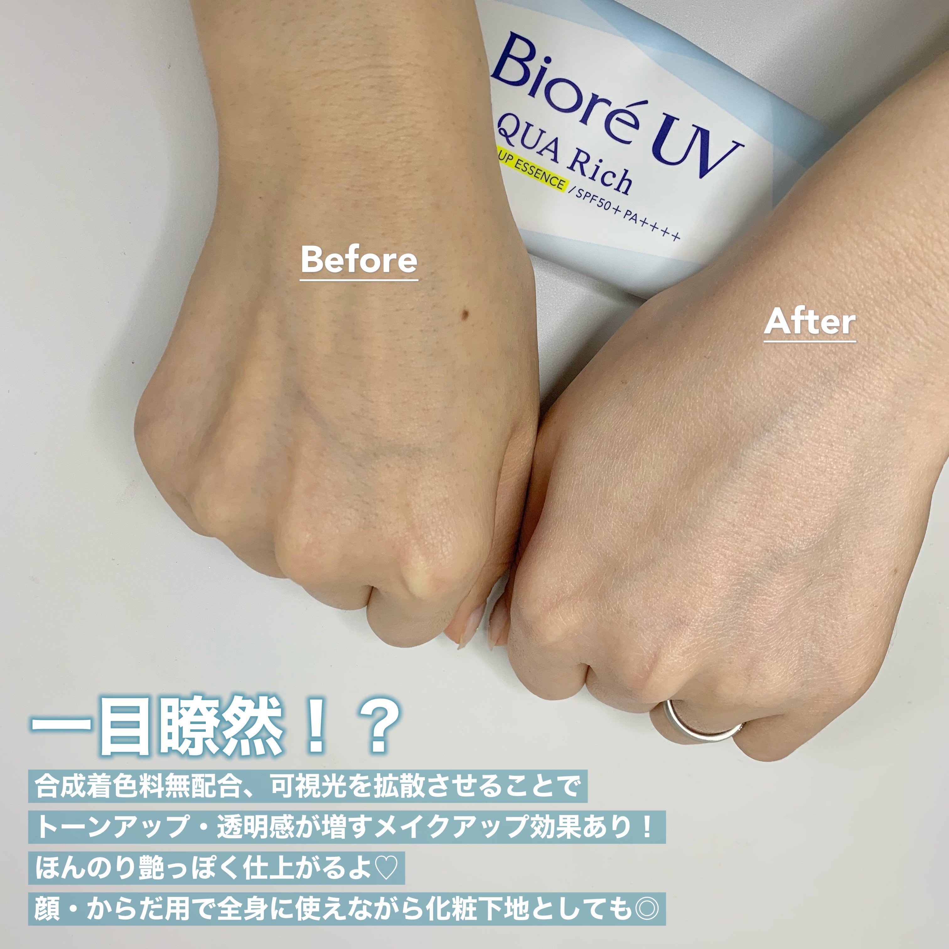 リピ買い♡日焼け止め【使った商品】ビオレUVアクアリッチライトアップエッセンス【使用感】さらさら【良いところ】・自然なトーンアップ♡・さらさらで伸ばしやすいテクスチャ・ベタつかないのも推しpoint◎・コスパも良き🫶【イマイチなところ】なし【...