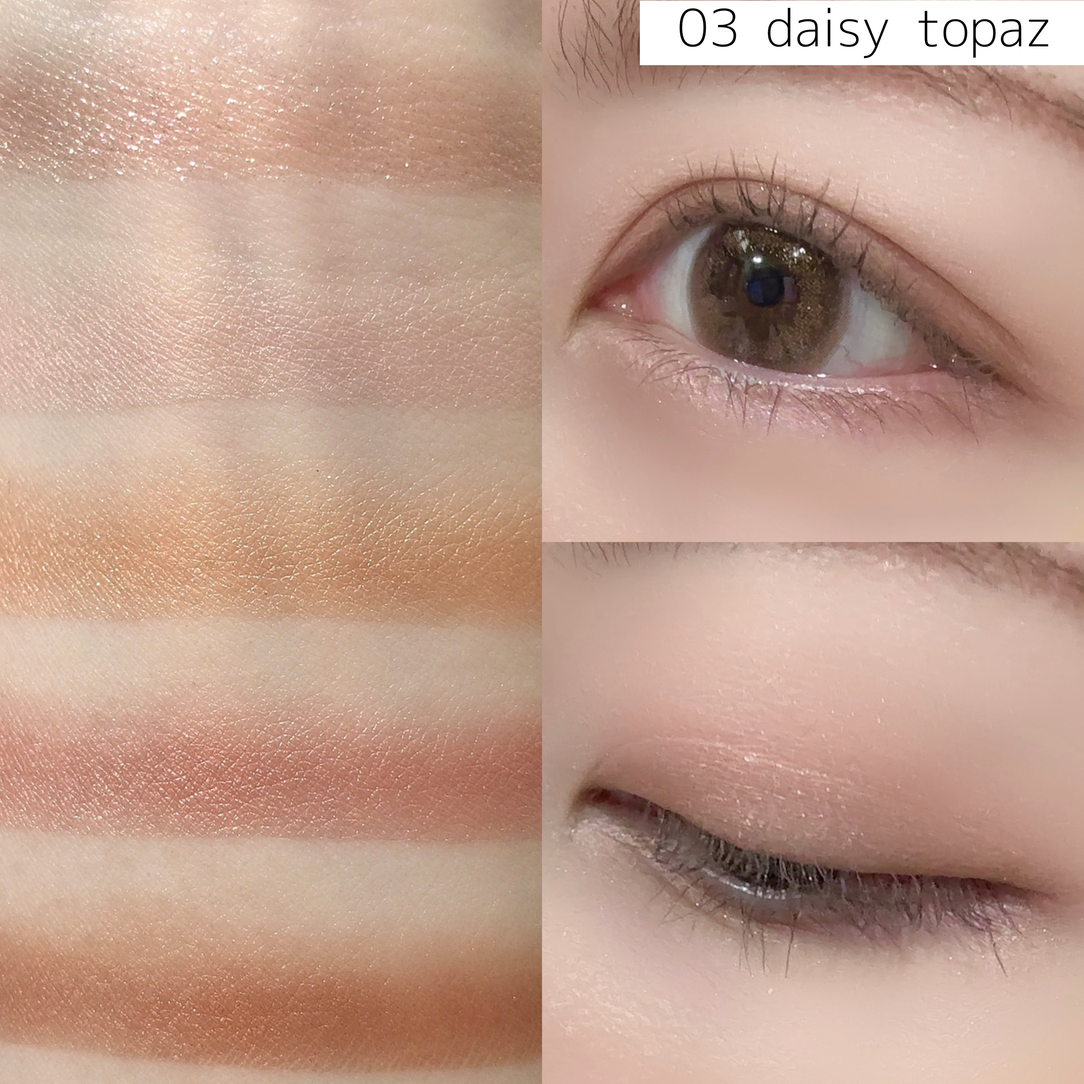 実際に付けてみるとパレットそのものの色ほど青みは強くなかったです。 ラメもギラギラしすぎてなくて普段使いできそう🙆♀️ 締め色も濃くないのでサマーさんにも使いやすいと思います✨ ハイライトとシェーディング、チークがセットになっています。 全色チークカラー、アイシャドウ、アイブロウとして使うこともできます♡ アイカラーレーションEX27よりしっかり青みがあって、淡く明るい✨ 私は締め色もラメもなくていいし、明るい色の方が好きなので、個人的にはこちらをアイシャドウとして使う方がEX27より使いやすいかも…笑 発色とラメが欲しい方はアイカラーレーションEX27の方がおすすめ🙆♀️!!