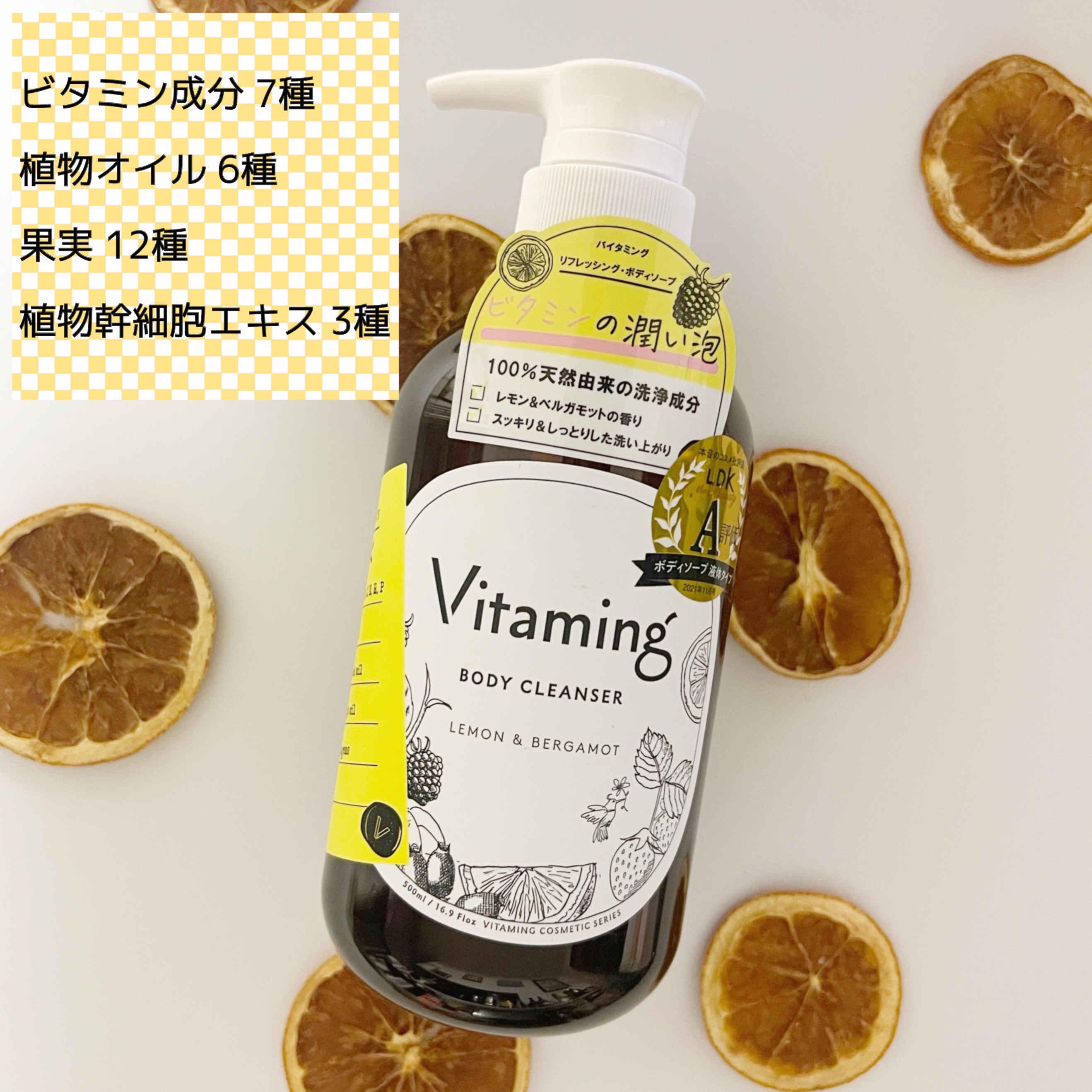商品詳細情報Vitaming リフレッシングボディソープ(レモン&ベルガモットの香り)