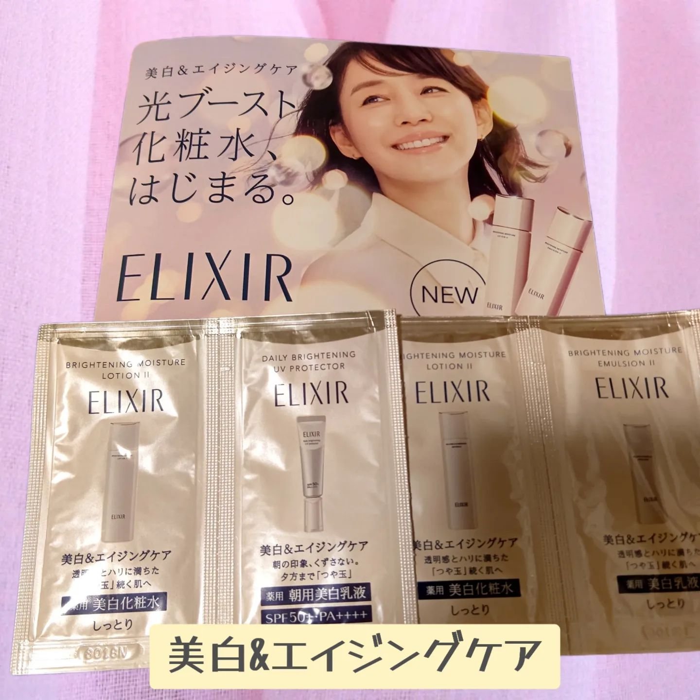エリクシールブライトニング ローション WT ⅡブライトニングエマルジョンWTII【医薬部外品】「有効成分:4-メトキシサリチル酸カリウム塩、グリチルリチン酸ジカリウム」ᝰ✍🏻✩꙳サンプルを当選していただきました(ᴗ̤.̮ᴗ̤)₎₎ᵗᑋᵃᐢᵏ...