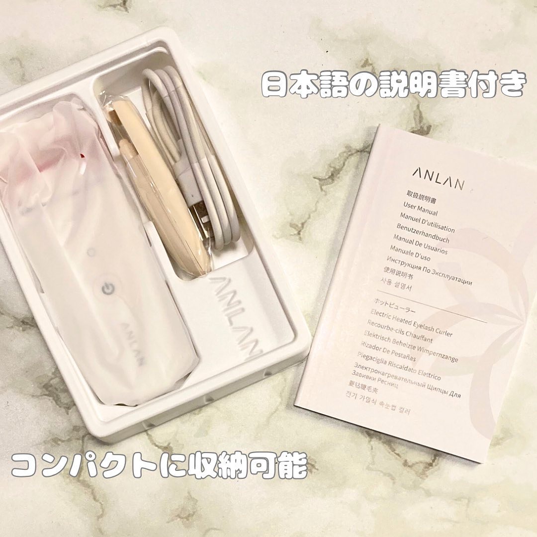 ANLANの説明書の日本語がちゃんと日本語だし、案件送ってくる際のDMの日本語もおかしくないし、ちゃんと充電口がType-Cだったり、CEマーク(欧州の安全認定マーク的な)を取ってたりと私はそこそこ信用しているので使ってる! カールが綺麗に上がるので、使った後に、かっちり固定する系のマスカラとピンセットを使うとワンホン風になる。 火傷もしたことないし、皮膚はたまにはさむけど怪我したことない。