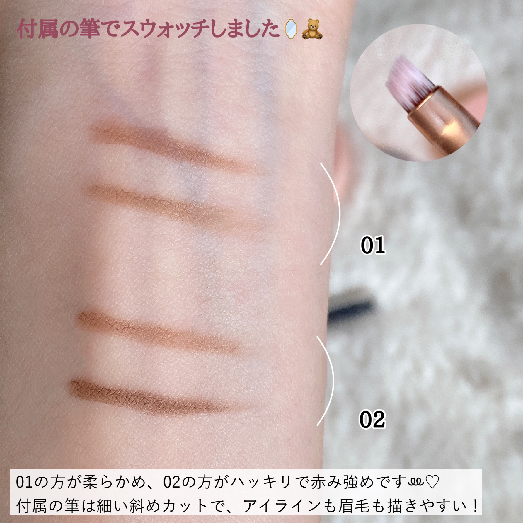 2色ずつ入ってるので混ぜても使えちゃう💖 ちょっと不器用な私には使いづらかったけど、コレ慣れたらチョンチョン!って簡単に描けそう︎︎👍 汗・皮脂に強くて時間が経っても眉尻落ちなかったのが嬉しい♡