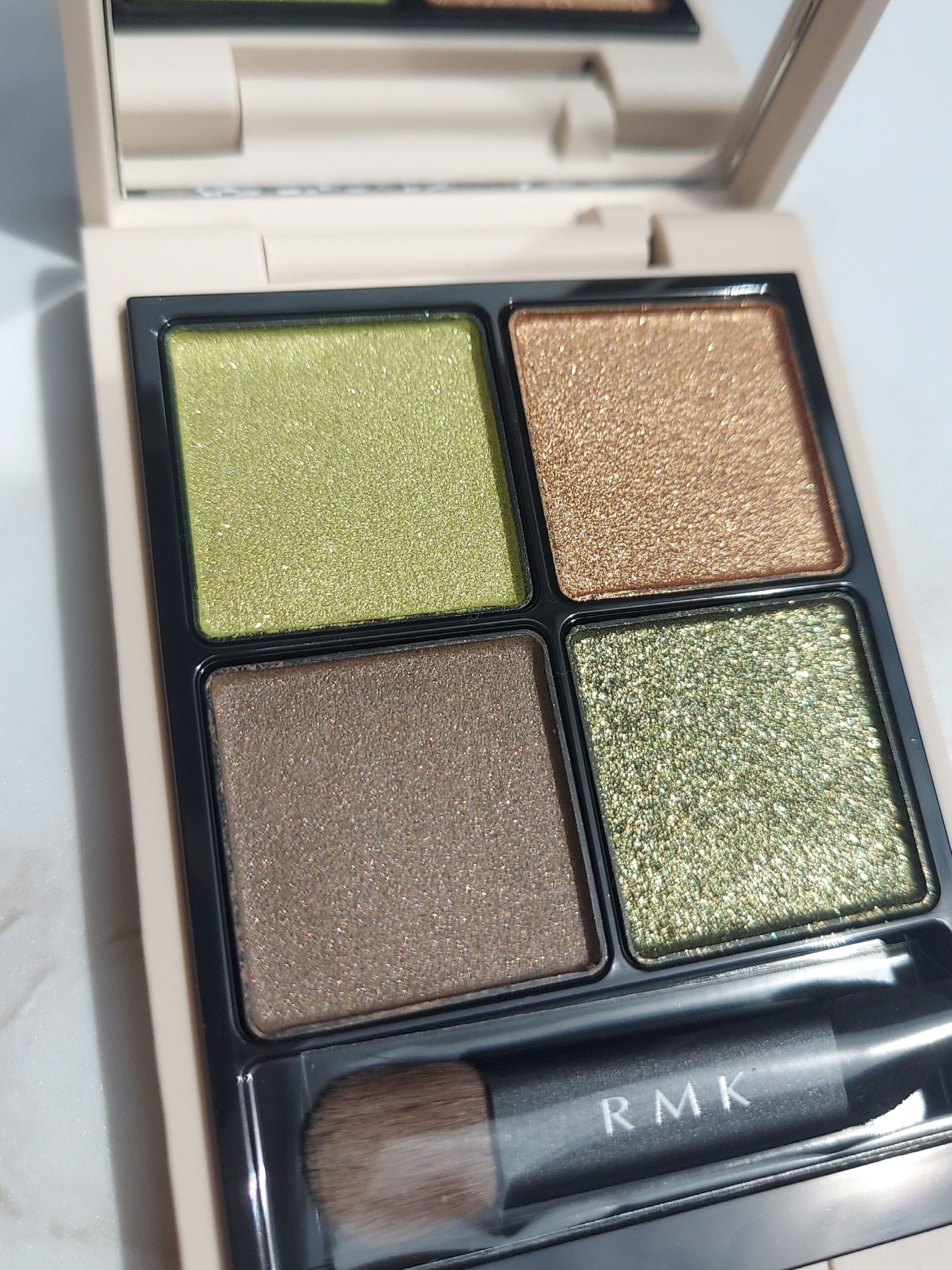- 微差までこだわりぬいた色と質感のニューエッセンシャルパレット。 重ねるごとに深みを増し、 さまざまな質感やきらめきが混ざりあってつくり出すのは まるでワンカラーのように美しい、 やわらかくモダンなスモーキーアイ。 RMK新質感のライトシャイニーを含む、シャイニー、シマー、 パールシマー、マットのきらめきやツヤを放つ質感と色は、 それぞれが主役級でありながら4色すべてを重ねても濁らず、 奥ゆきを生みながらもダークにならない設計を追求しました。 白膜感や厚みの出にくい処方だから、 肌の色をいかしてクリアに発色。 透明感とツヤのあるパウダーが、 まぶたにやわらかくのび広がり、しっとりと肌と一体化。 肌になじみながらも主張する奥ゆきと透明感が目もとを彩り、 まとう人のパーソナリティをよりいっそう引き立てます。