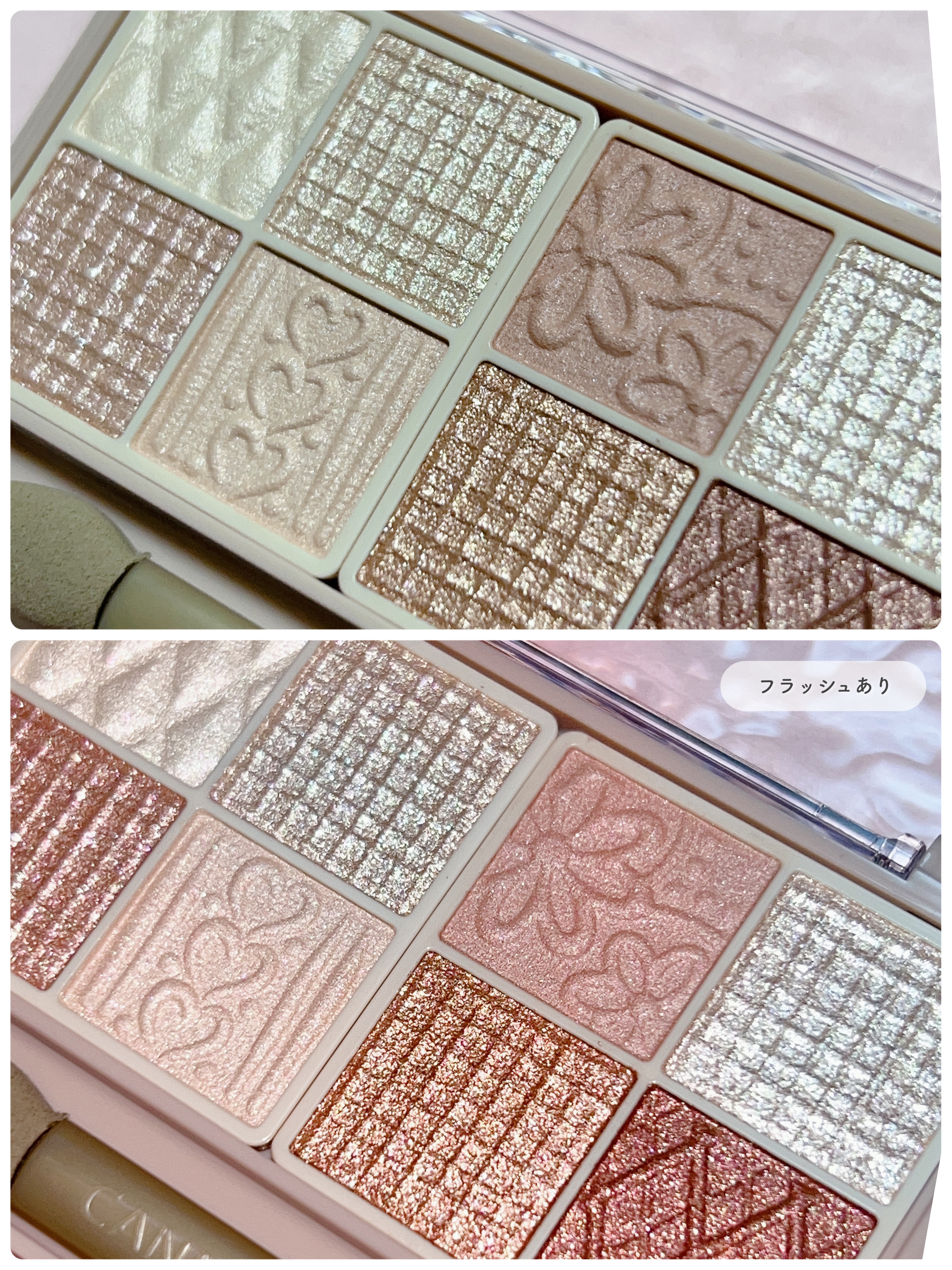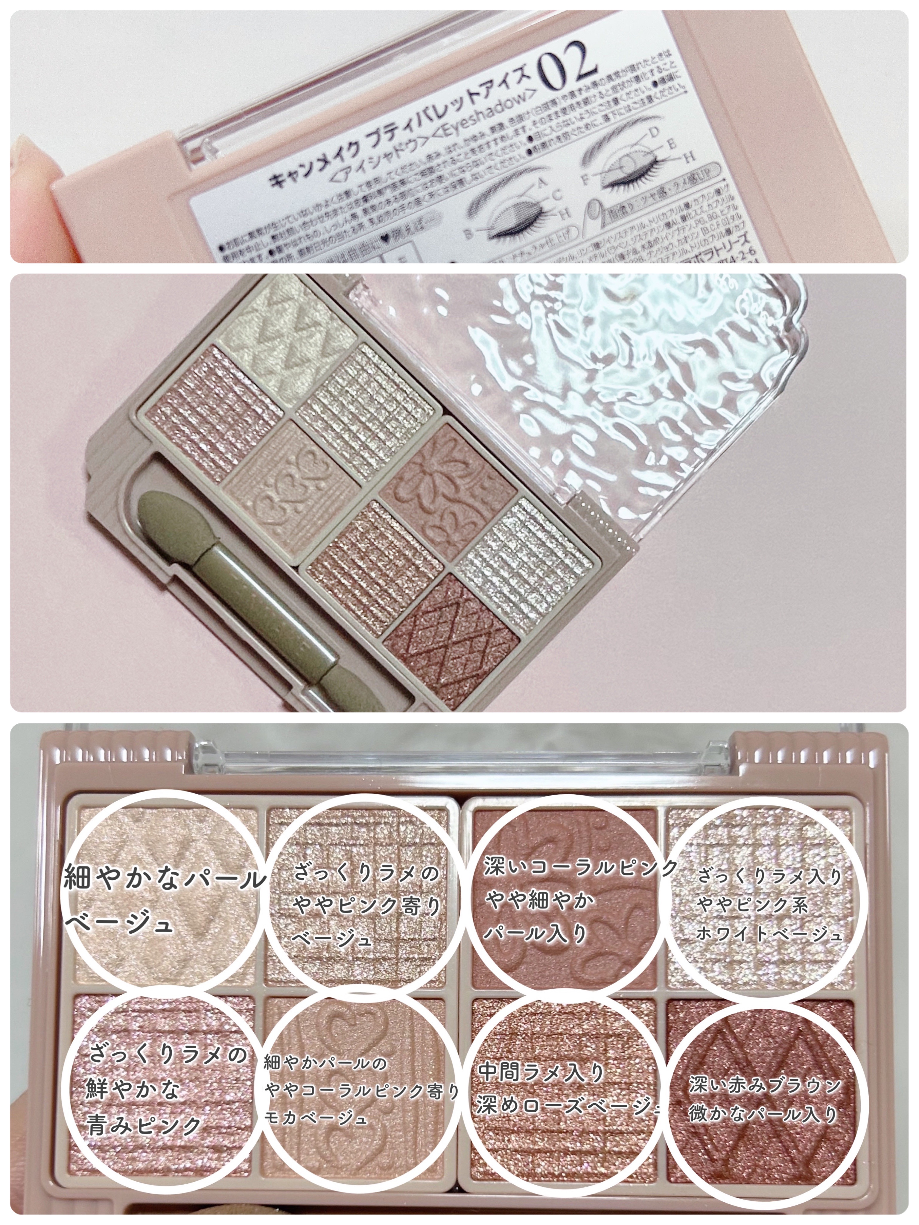 - 持ち歩ける多色パレットがキャンメイクから登場! 捨て色なしの8色入り&チップ付! 「持ち歩けること」や「外出先でもメイク直しができること」を重視した多色パレット。 持ち運びやすいサイズ感なのに、贅沢に8色入りです。 さらに便利なダブルエンドチップまで! マット×パール×ラメなど、組み合わせ方はあなたの自由! 自分好みのアイメイクを楽しめます。