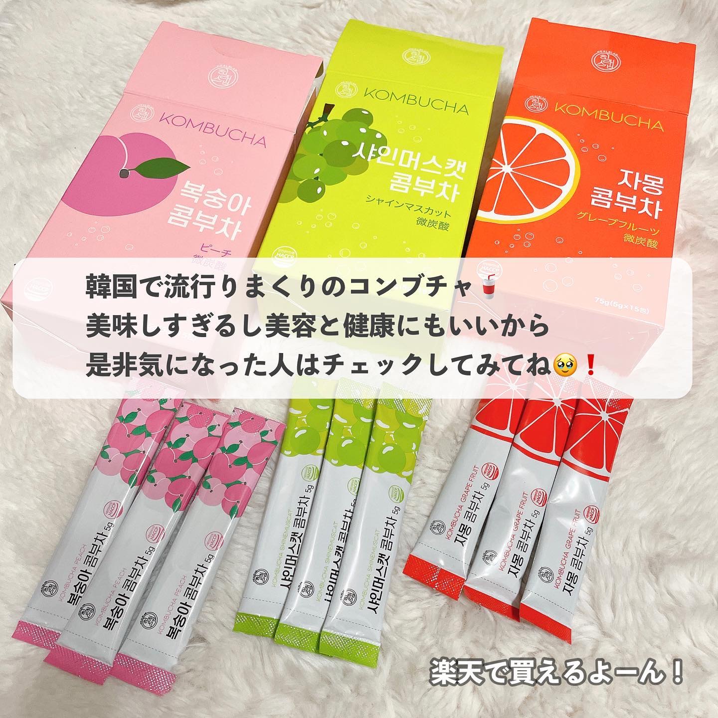 韓国のコンブチャは発酵飲料なので、腸内環境を整えるのにもってこいらしい😳✨ ライチピーチ味を選んでみた❤︎❤︎ 味は、ピーチ感強めでライチの甘酸っぱいさを感じるドリンク🍑♡ 美味しくて腸活もできるなんて最高すぎる😳✨ 一回分一本使い切りの粉末タイプなので、持ち運びも楽々🎶