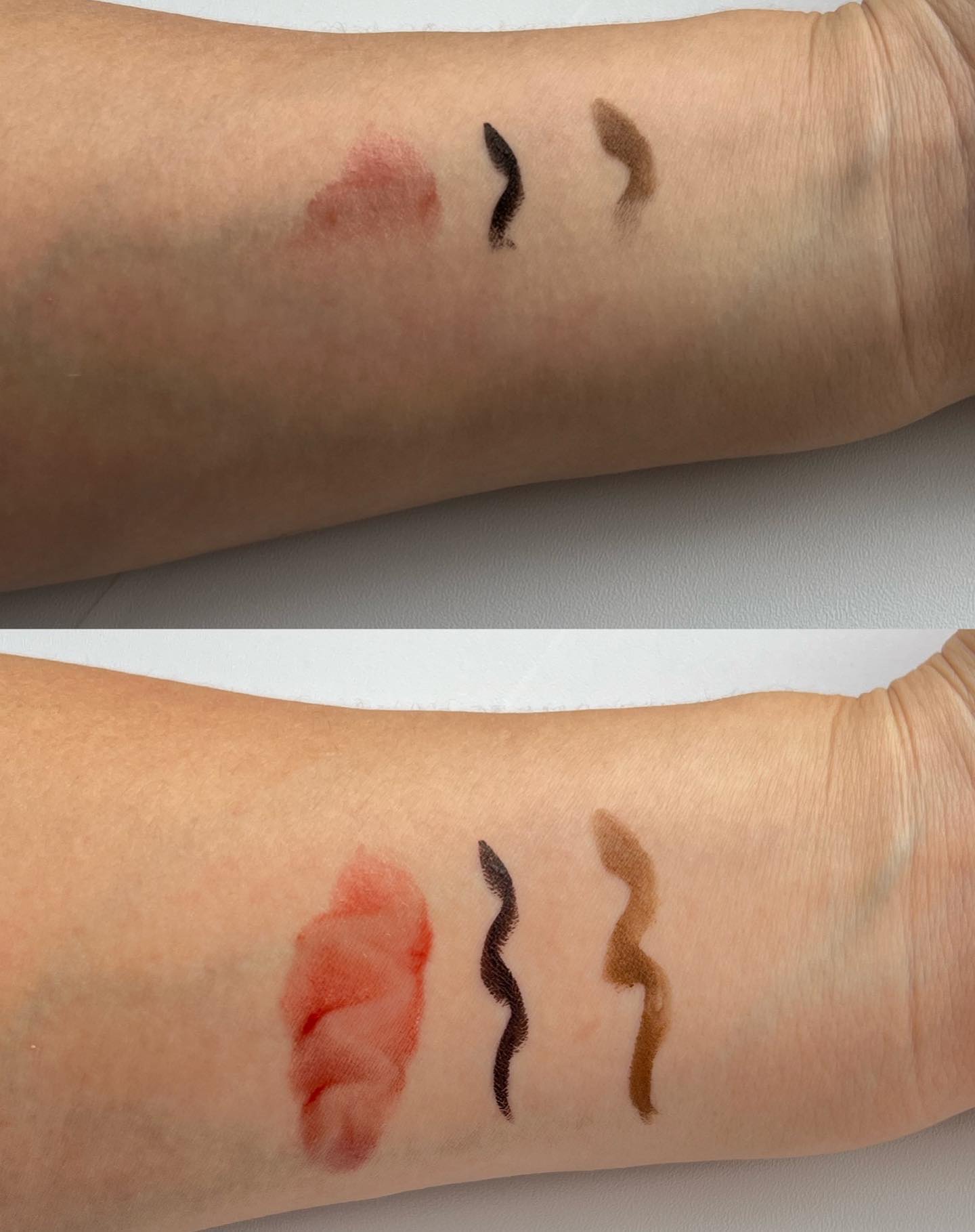 ジェリーというネーミングだけあって、硬化前のジェルネイルのようなとってもやわらかい質感!! mixされたパールが絶妙な発光をしていて、粉っぽさやラメ感もないので自然に濡れツヤを追加してくれます🧚✨ Cゾーンや、おでこ、目元や鼻先、リップの山の部分、そして体にも😳 足のスネとかに塗るとほっそり見えたりするのかな🤍 メイク初心者でもトントン乗せるだけなのでとっても使いやすいです♪ チークと相性の良さそうなピンク( #2 Pink Shell)も気になりました🤔💓
