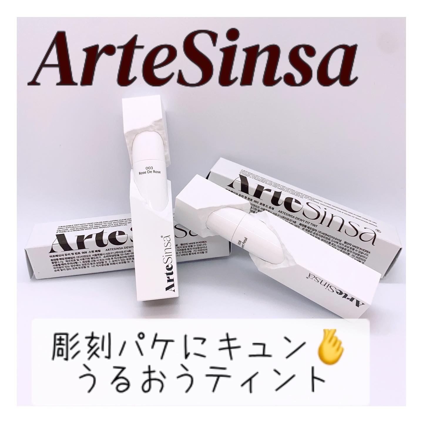 - 【Dewy Fit Tint 】は「彫刻ティント」で話題となったArteSinsanのシグネチャーティント 001/005カラーはリニューアルカラーで登場! 水分たっぷりのしっとりしたテクスチャーにウォータリーコーティングで鮮やかな発色に立体感を与えてくれます。 長持ちする着色力と高い保湿力を兼ね備え、唇に優しい使い心地で使用でき密着力も◎! まるでアーティスティック彫刻のようなティントです。