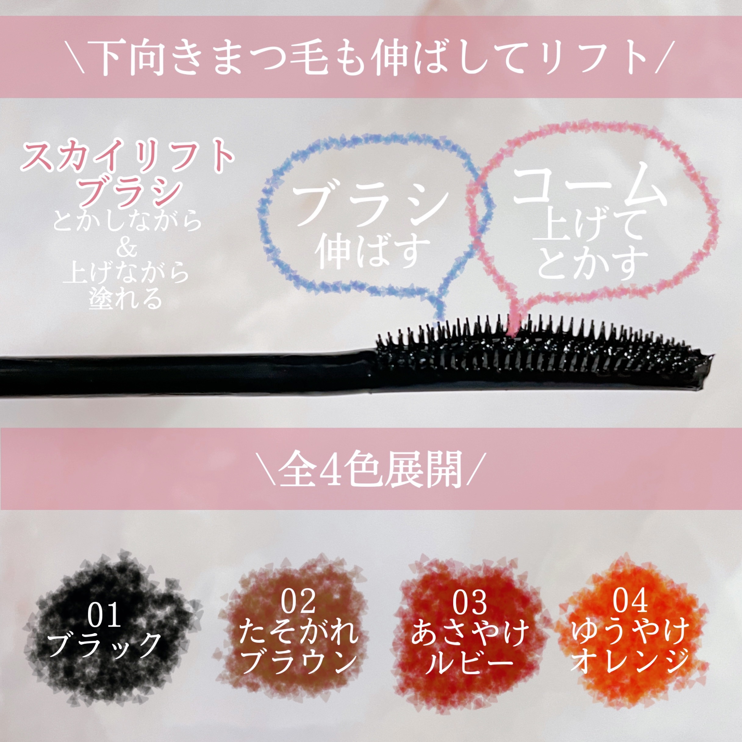 メイベリンニューヨーク🗽MAYBELLINENEWYORK☑︎スカイハイマスカラ✨🌌01ブラック02たそがれブラウン08ゆうかげモーブブラウン¥1,694根元からグイッと上げてキレイに伸ばすスカイリフトブラシ×カールキープ処方で上向きまつ毛が...
