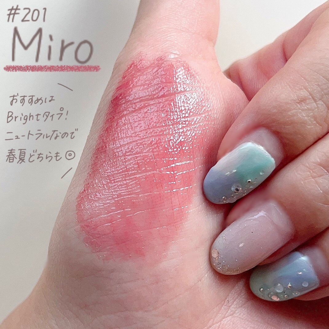 これ、インスタの広告で見かけて一目惚れして秒で買った🥺! まるで名刺みたいなリップグロス。 これ本当にうっすいんですよ!! リップ持ってるのうっかり忘れるくらい ポーチに入れても隙間にスッと入る。 なので持ち運びには最高🥹 なんならずぼらな私は ポッケに入れたくなる(一応我慢してる) 116は明るくやわらかさのあるピンク。 ほんのり青み寄りでブライトサマー、 ブライトスプリングには使いやすい◎ 118は青みのレッド。 こっちも全く重さはない まろやかさのある赤なので、 ブライトサマー、クールサマー クリアウィンターの軽めの赤としておすすめ♡ 色持ちは特別良い!って訳ではない。 ただ、うるみ感が残るので 潤い感のある唇に見えるのと 汚く落ちないので使いやすいです🙆♀️