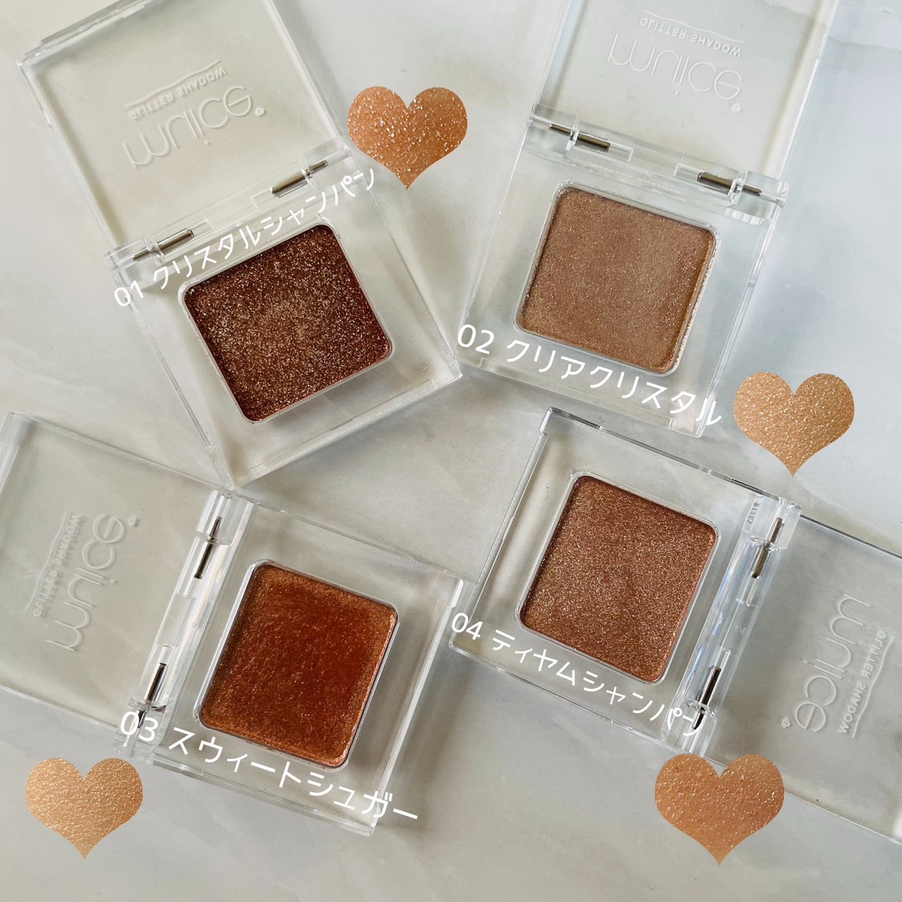 - まばゆい輝き、踊る色彩 グリッターシャドウ 01チラチラと輝く上品な煌めき 高輝度な大粒ラメや微細パールがまぶたの上でチラチラと輝き、上品なうるみEYEに。 単色使いはもちろん、レイヤードを楽しめます。 02長時間、ピタッと密着 パウダーでもクリームでもないやわらかいテクスチャーがまぶたにピタッと密着し、ラメ落ちを防ぎます。 03ラメを引き立たせるミュートカラーベース ベースカラーの発色を控えめにすることで、肌に馴染んで、ラメやパールの煌めきを引き立たせます。