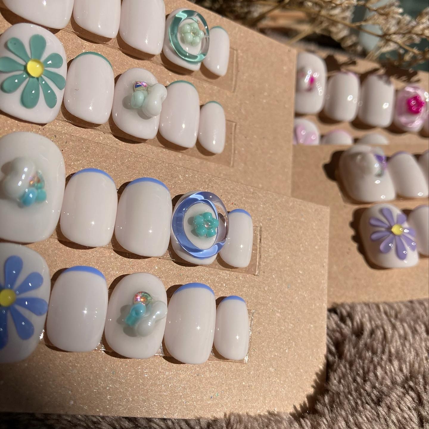 わたしは基本プチプラしか使わないので 参考にして頂けたら嬉しいです☺️ 春っぽくしたい!との事だったので 色はいい感じにご提案させて頂きました🥰🌷 #春ネイル #うねうねネイル #ぷっくりネイル #ネイルチップ #個性派ネイル #プチプラネイル #daisoネイル #100均ネイル #セルフネイル #カラフルネイル #ポップネイル